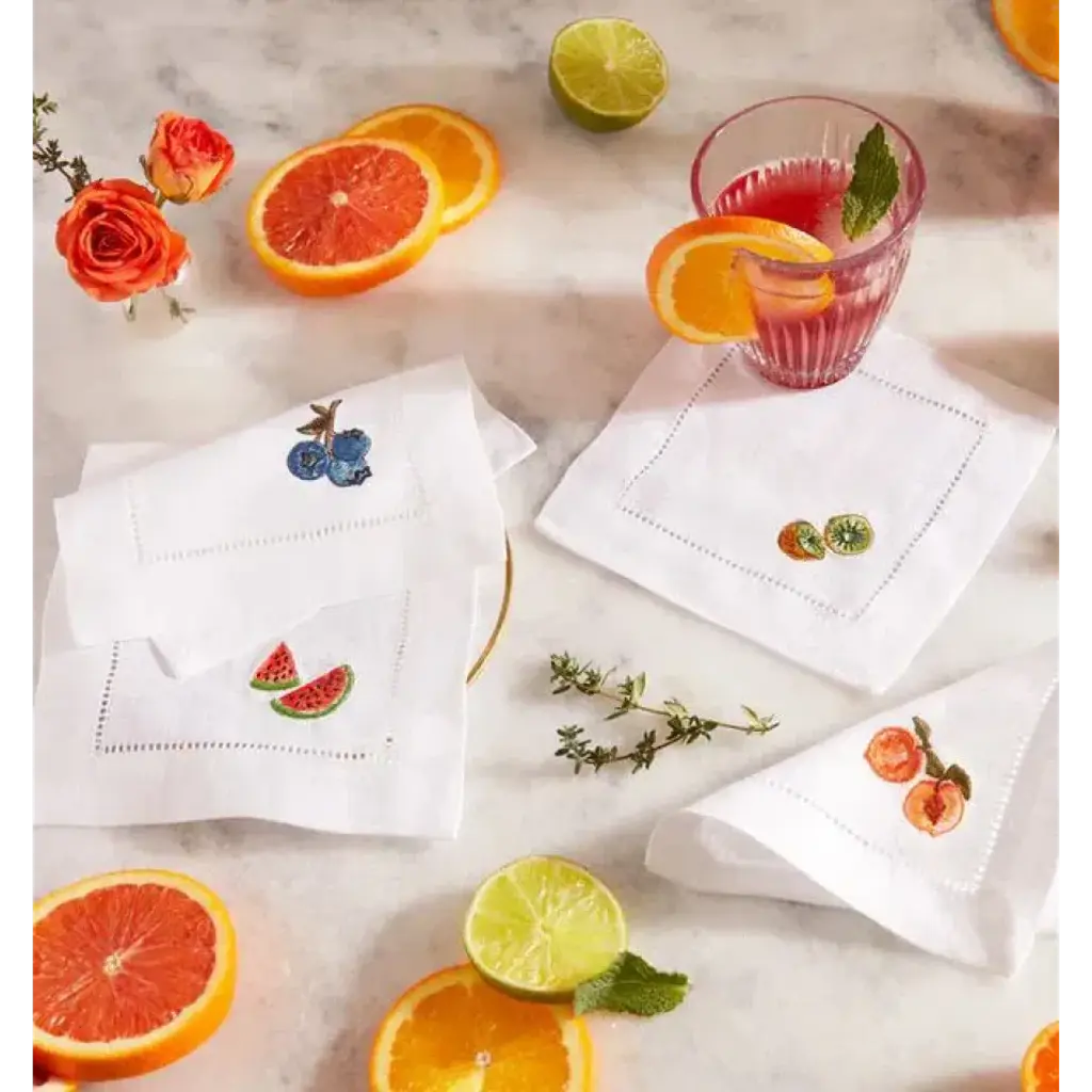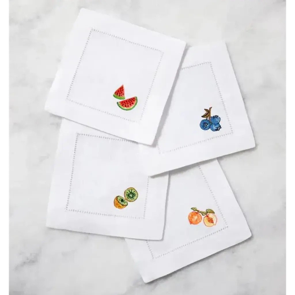 Add a sweet touch to your gatherings with Fruit cocktail napkins. Featuring charmingly embroidered kiwis, peaches, blueberries and watermelons on white Festival linen base, Dolce cocktail napkins are a beautiful addition to your dining scene. Established in 1891, Sferra began in Italy as a purveyor of fine Italian lace to the discerning clientele who frequented the grand seaside resorts in the East Coast of the United States. Later, the company expanded to include damasks from Ireland, French Alencon lace, and embroideries from Belgium and Switzerland. Today, Sferra is one of the most respected and innovative brands of luxury bed, bath, and table linens in the United States.