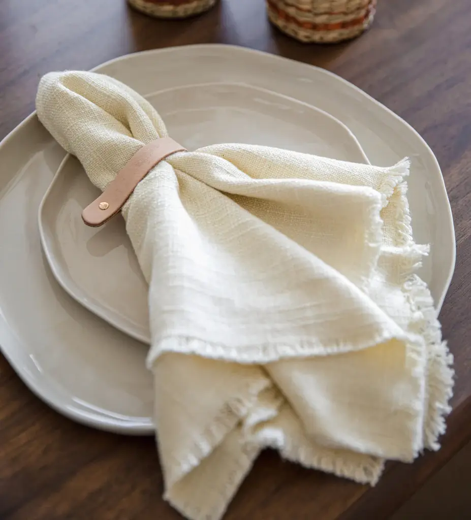 Available in a set of four, our Ella Napkin Set is the perfect way to add some light texture to your tablescape. Coming in an understated neutral cream color, these linen napkins will make quite the statement. Dimensions: 18.0 x 18.0 x 0.3 Material: Linen Blend