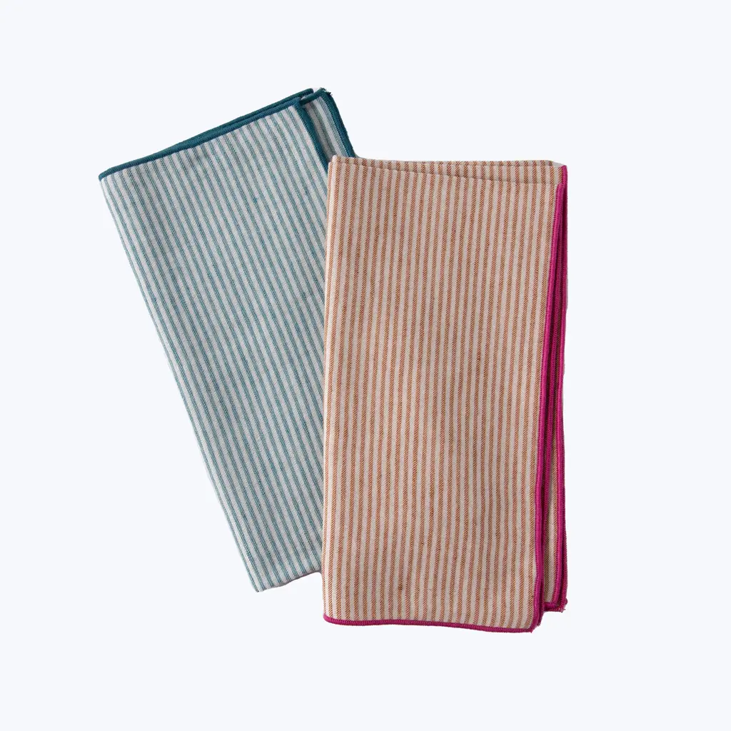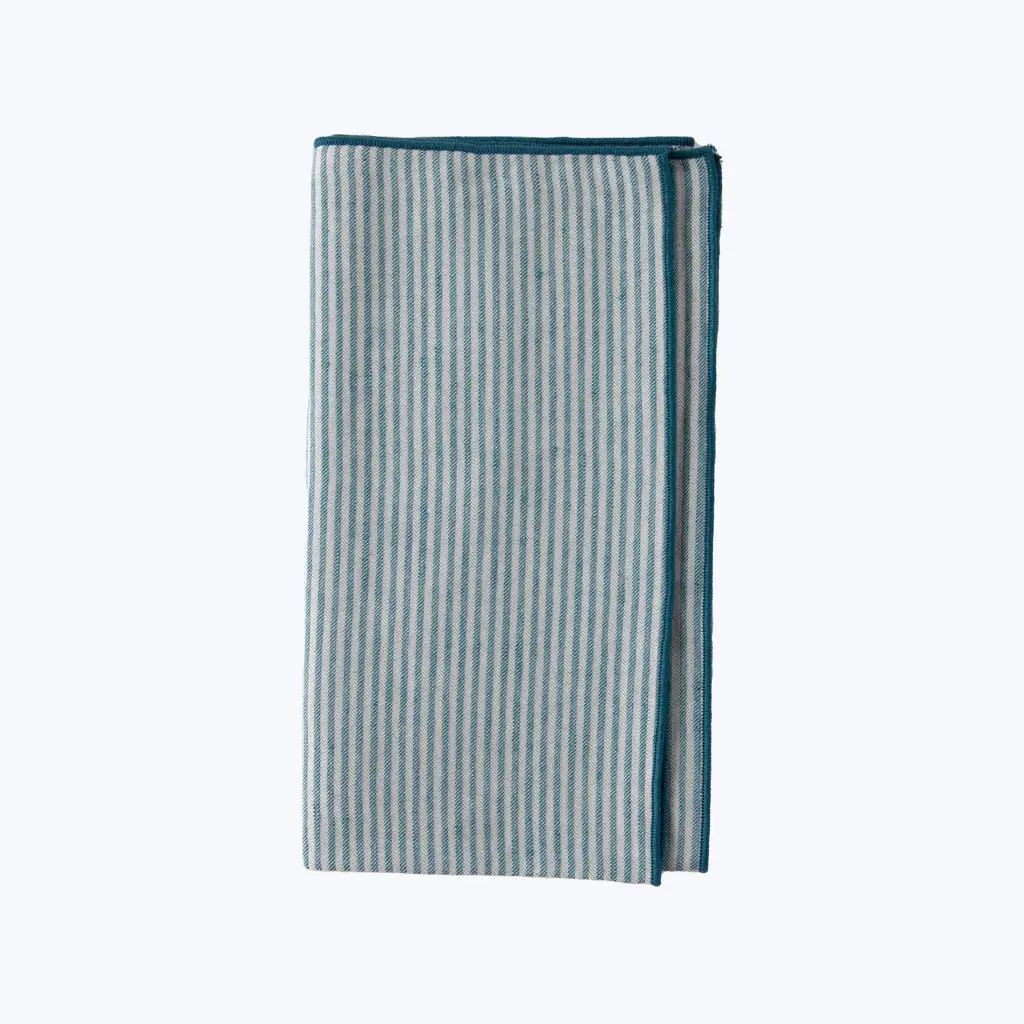 Discover the timeless allure of stripes in Johanna Howard’s Elsa Napkin. Woven in Portugal in a beautiful cotton and linen blend, the Elsa Napkin is detailed with a contrasting embroidered border. Pair with the Elsa Placemat. Available in Peacock/Natural and Terracotta/Natural editions.