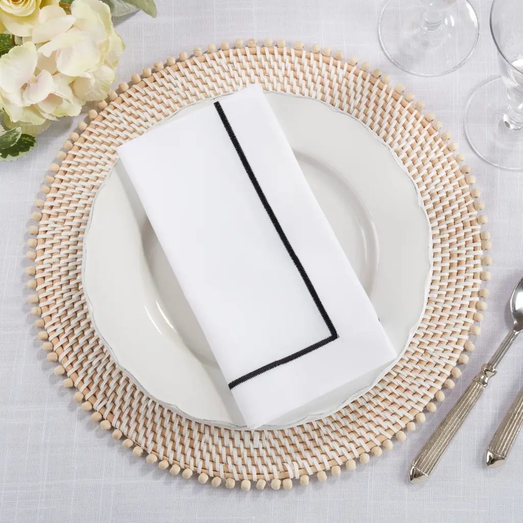 This charming set of embroidered napkins is the ideal choice for a stylish, refined table decor. Perfect for special occasions, or entertaining guests, the set blends very well with both plain, solid colors and patterns. The shimmering metallic embroidery completes the look with subtle sparkle.