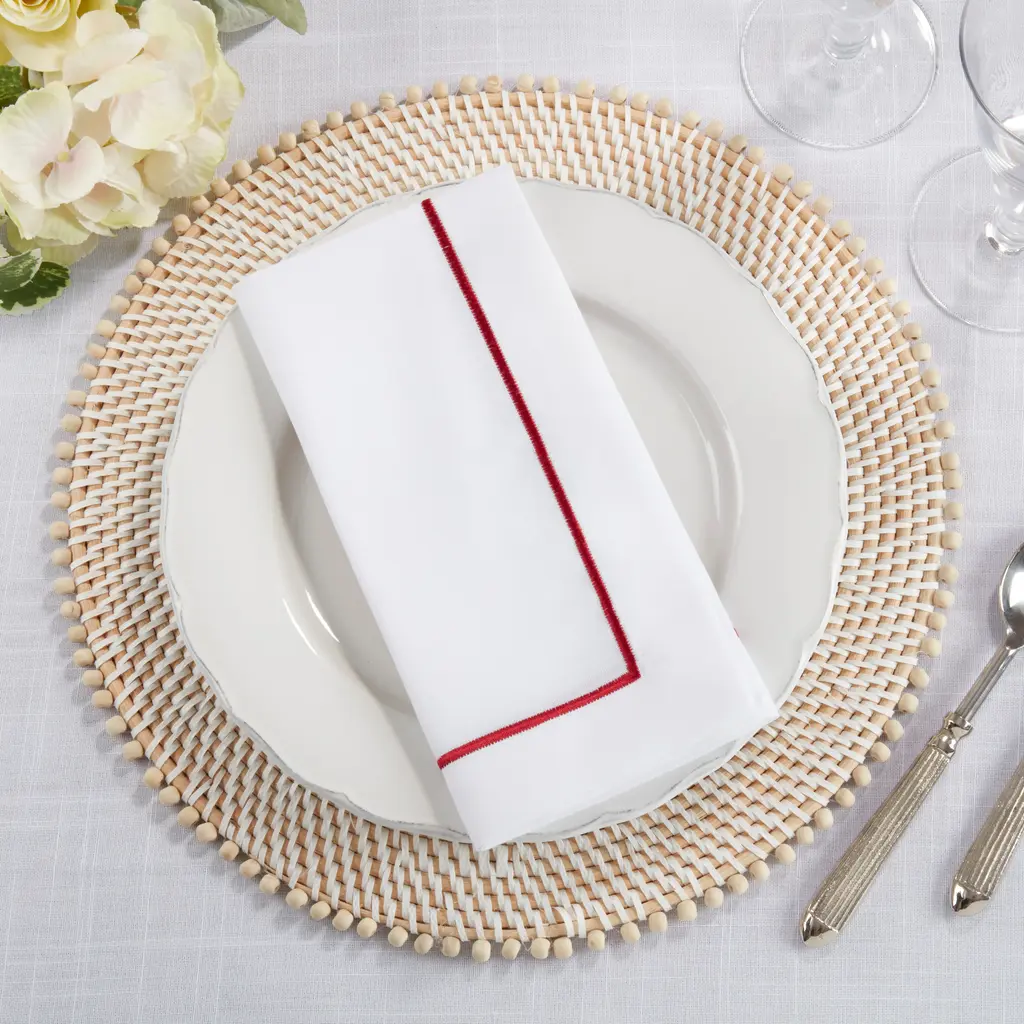 This charming set of embroidered napkins is the ideal choice for a stylish, refined table decor. Perfect for special occasions, or entertaining guests, the set blends very well with both plain, solid colors and patterns. The shimmering metallic embroidery completes the look with subtle sparkle.