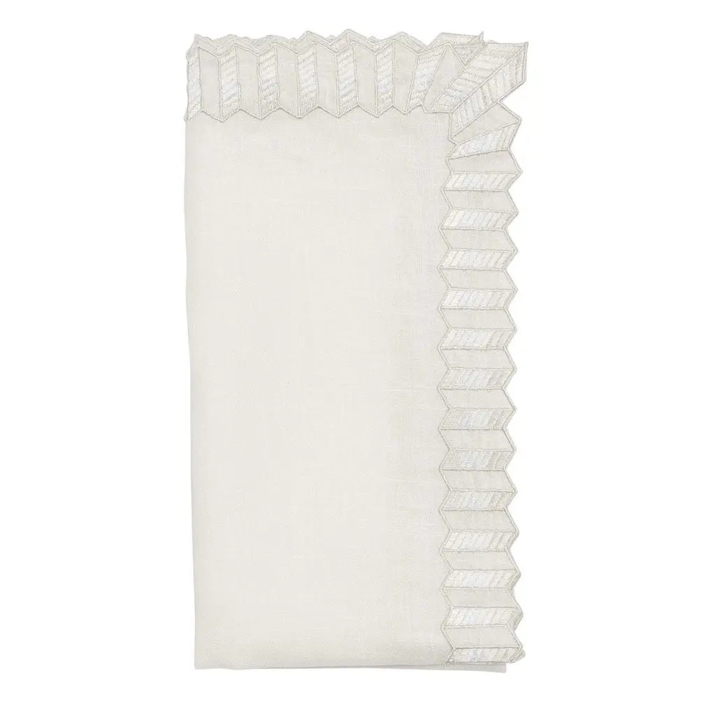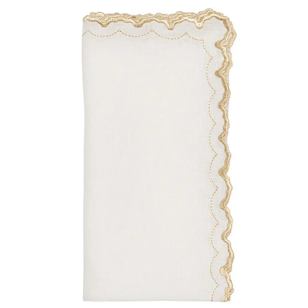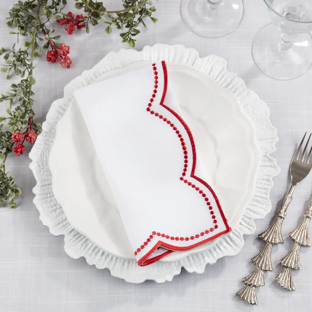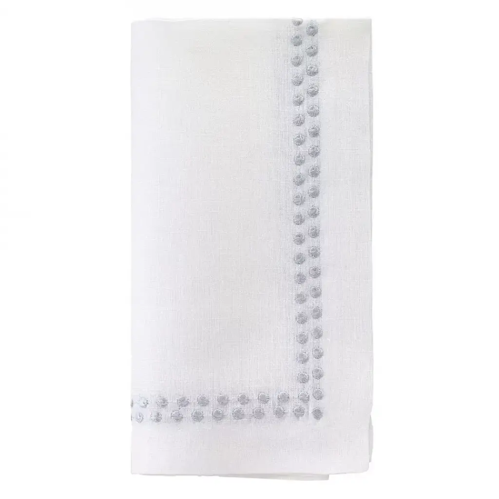 Elevate your dining experience with the exquisite Embroidered Polka Dot Napkins featuring a charming scallop edge. Delicately crafted, each napkin is adorned with intricate embroidery, adding a touch of timeless elegance to any table setting. The playful polka dot pattern infuses whimsy into your gatherings, while the scalloped edges exude sophistication. Perfect for both casual brunches and formal dinners, these napkins are sure to impress your guests and elevate any occasion. Make every meal a special one with the Embroidered Polka Dot Napkins.