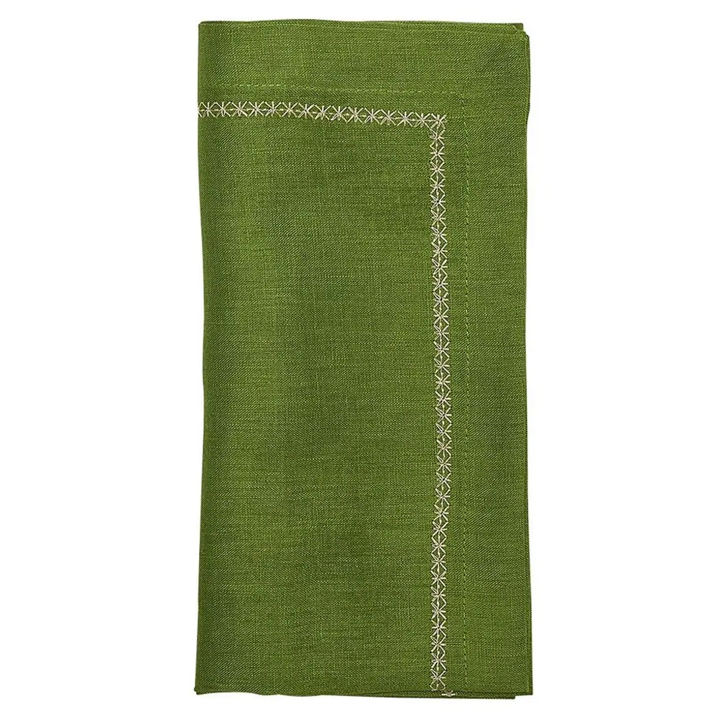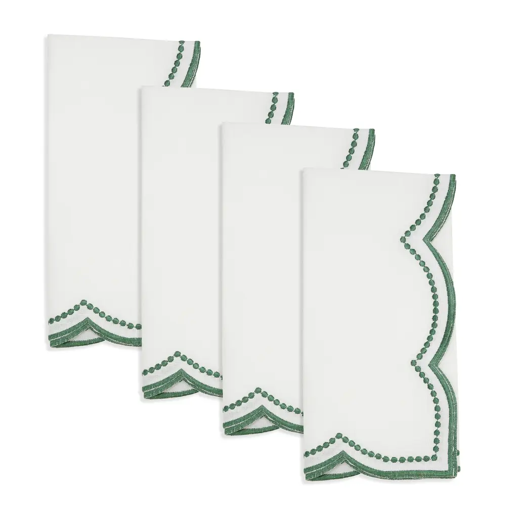 Embroidered Polka Dot Napkin W/ Scallop Edge, Set Of 4 - Green