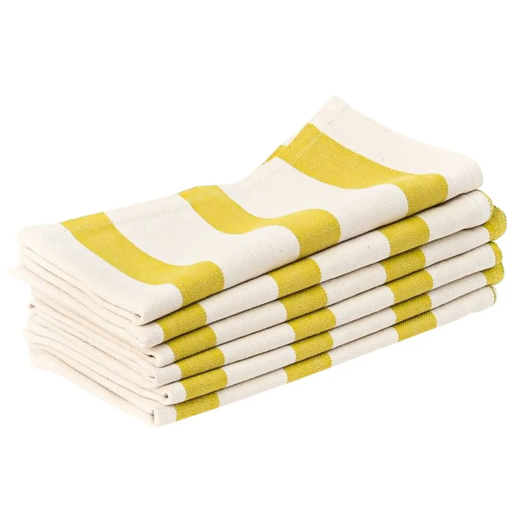 The striped design on these cotton table napkins just makes you think of summer days. With single color stripes and a clean pattern, this set is ideal for barbecues, garden dinner parties, as well as regular family dinners. Pair with plates and tableware in the same color schemes.