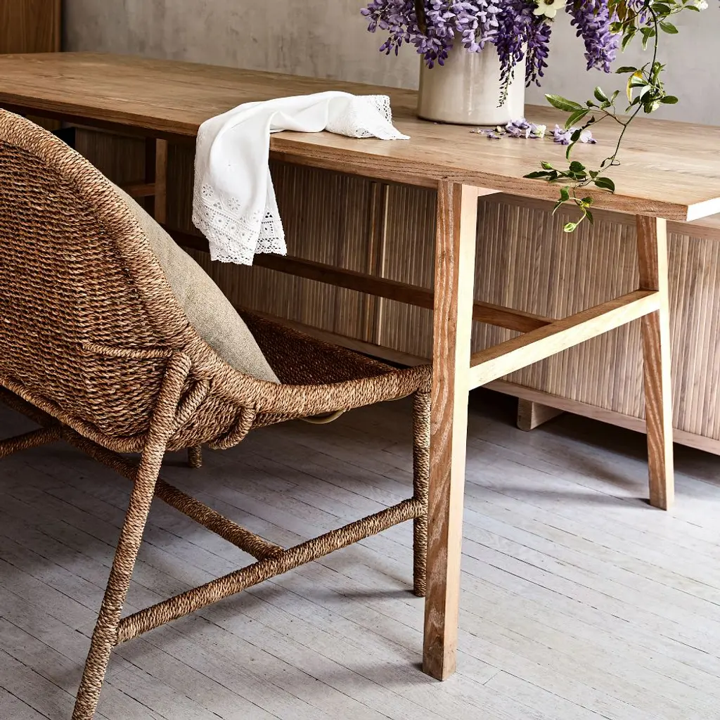 Ethereal matter. With an embroidered crocheted edge, these linen/cotton tablecloth and napkins are OEKO TEX® and Fair Trade Certified™. An easy, breezy addition to your table.