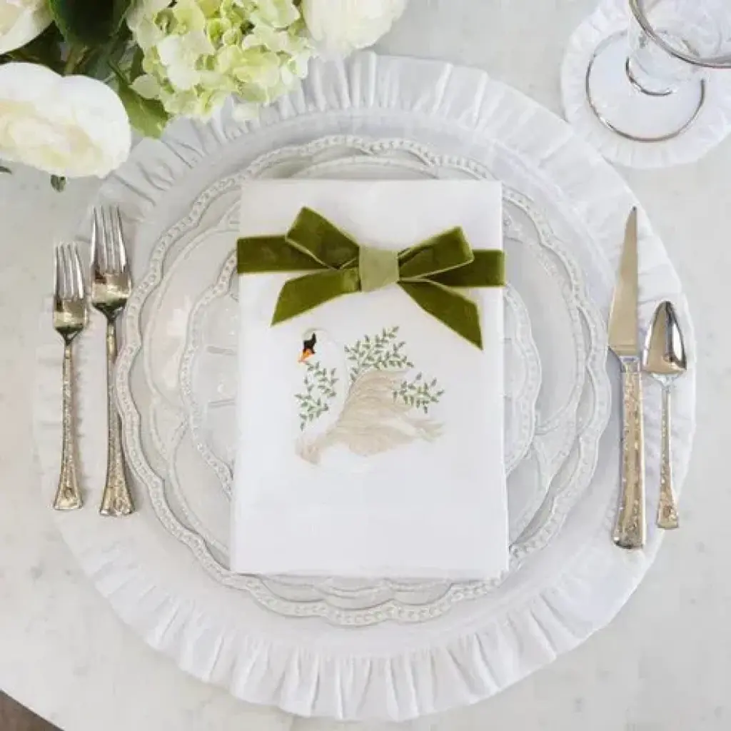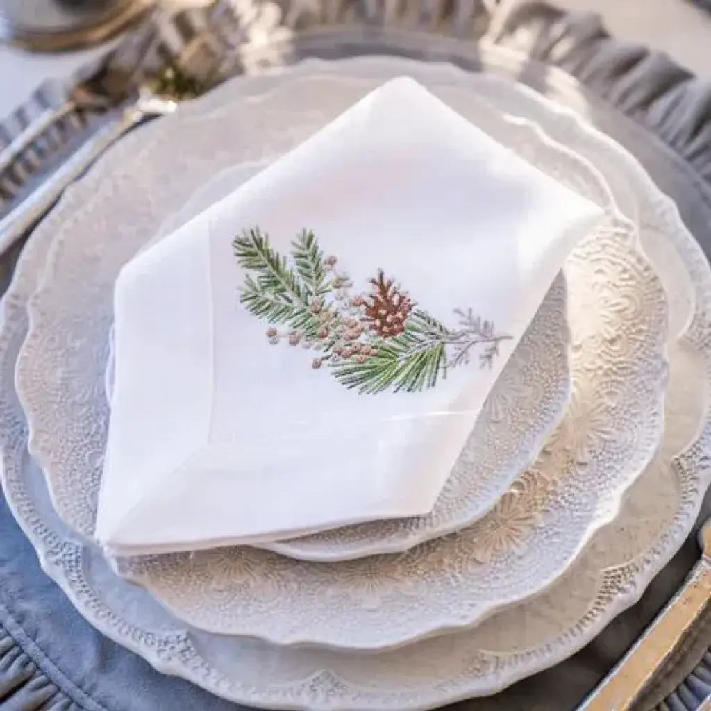 These 100% European linen napkins are a perfect mix of elegance and beauty. Each napkin is embroidered with a Natale inspired Fall sprig. They are designed to complement the timeless Natale Collection.