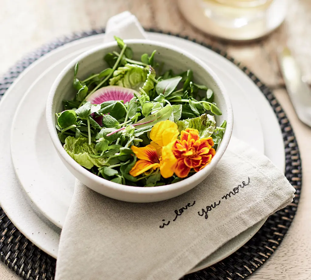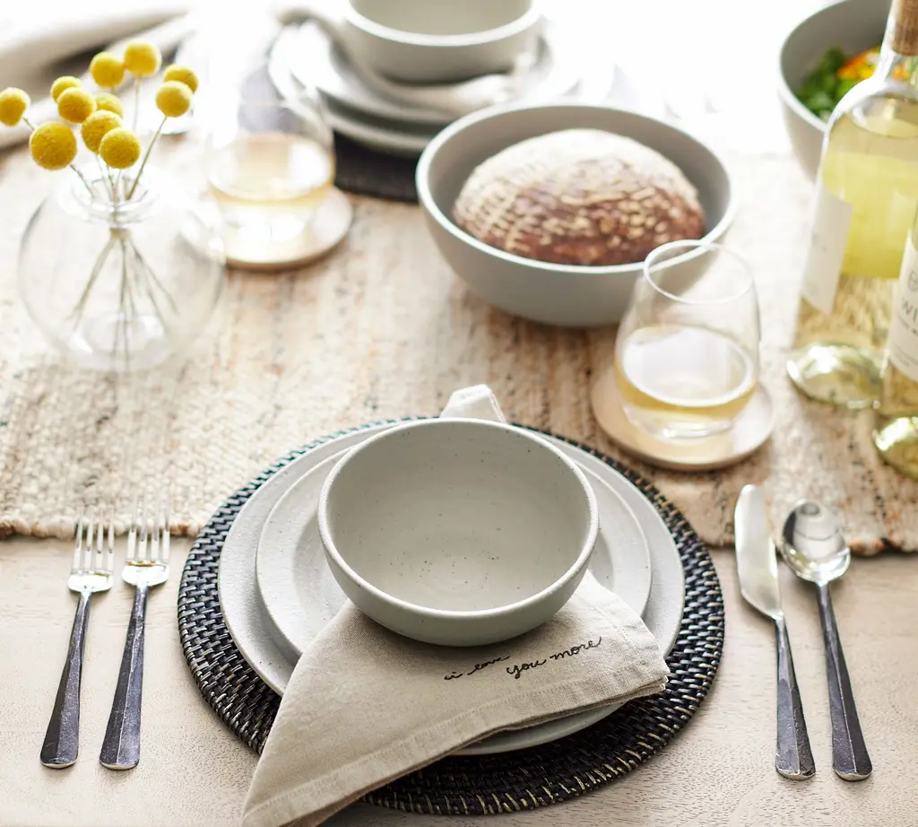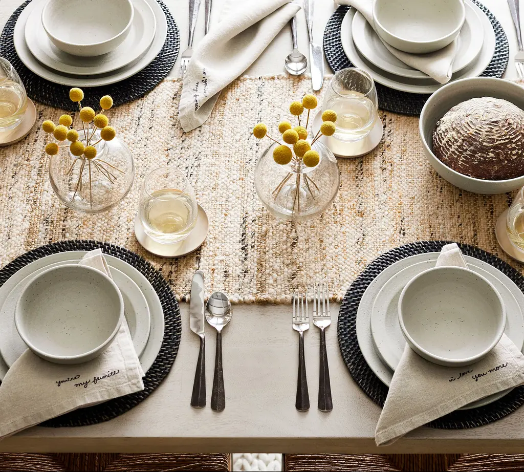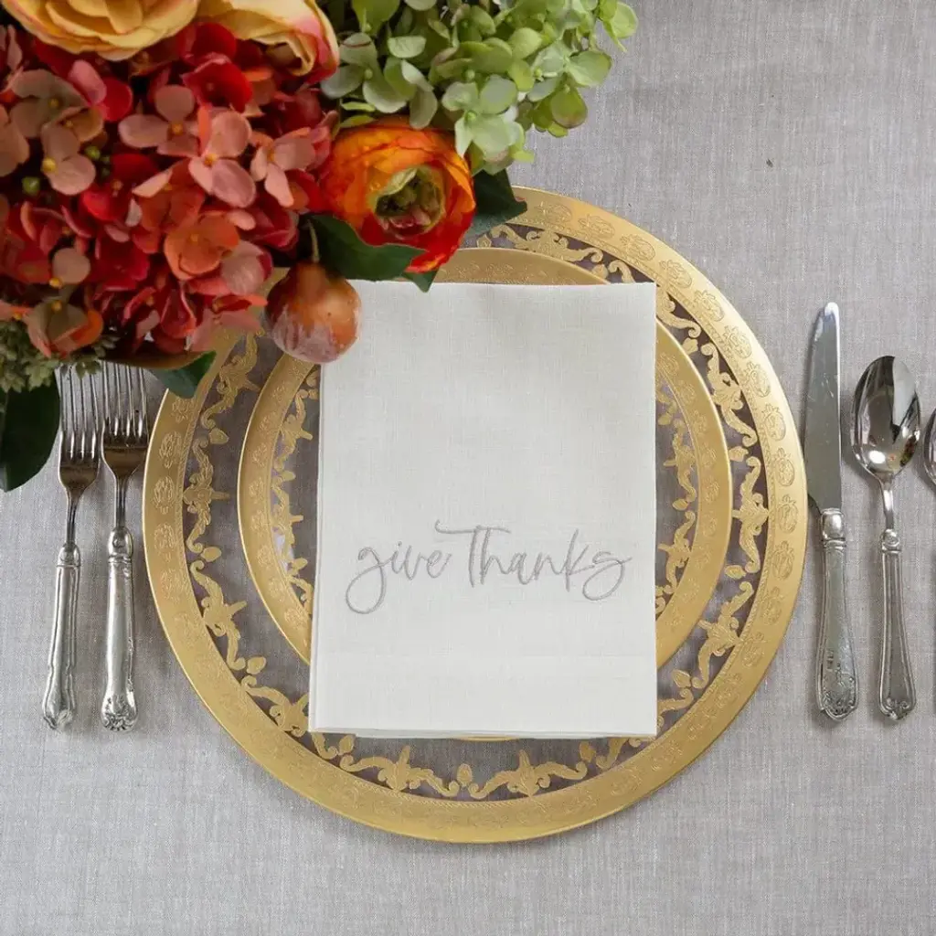 Sweet sayings embroidered on this set of napkins remind us to enjoy life’s little moments. Handwoven of linen for a relaxed, cozy look, they continue to get softer with time and add a romantic accent to any meal.