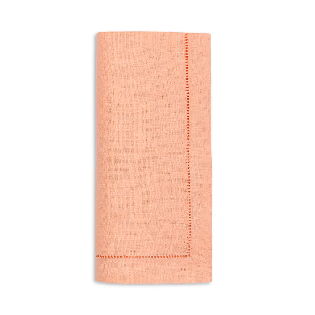 Beautiful dinner napkins in bold solid colors, with a row of hemstitching detail for an elegant dining table.