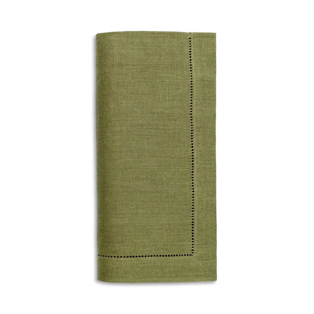 Beautiful dinner napkins in bold solid colors, with a row of hemstitching detail for an elegant dining table.