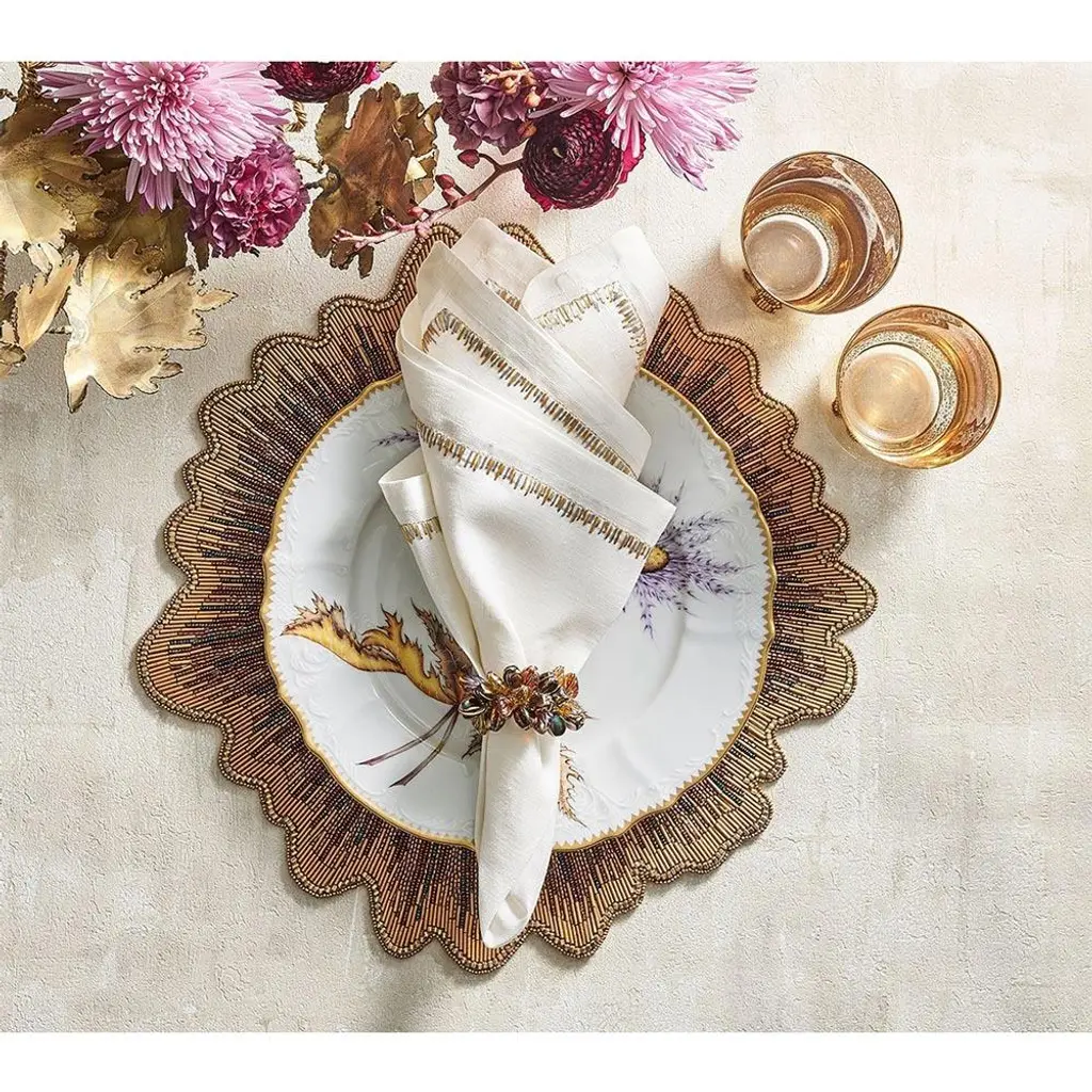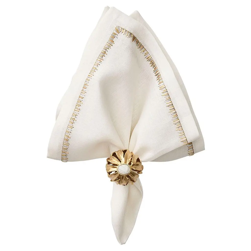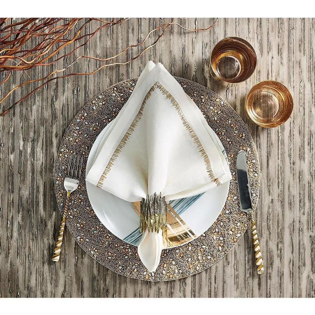Filament Coastal Gold Embroidered Linen Napkin - Set Of 4