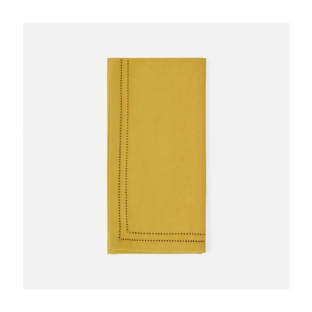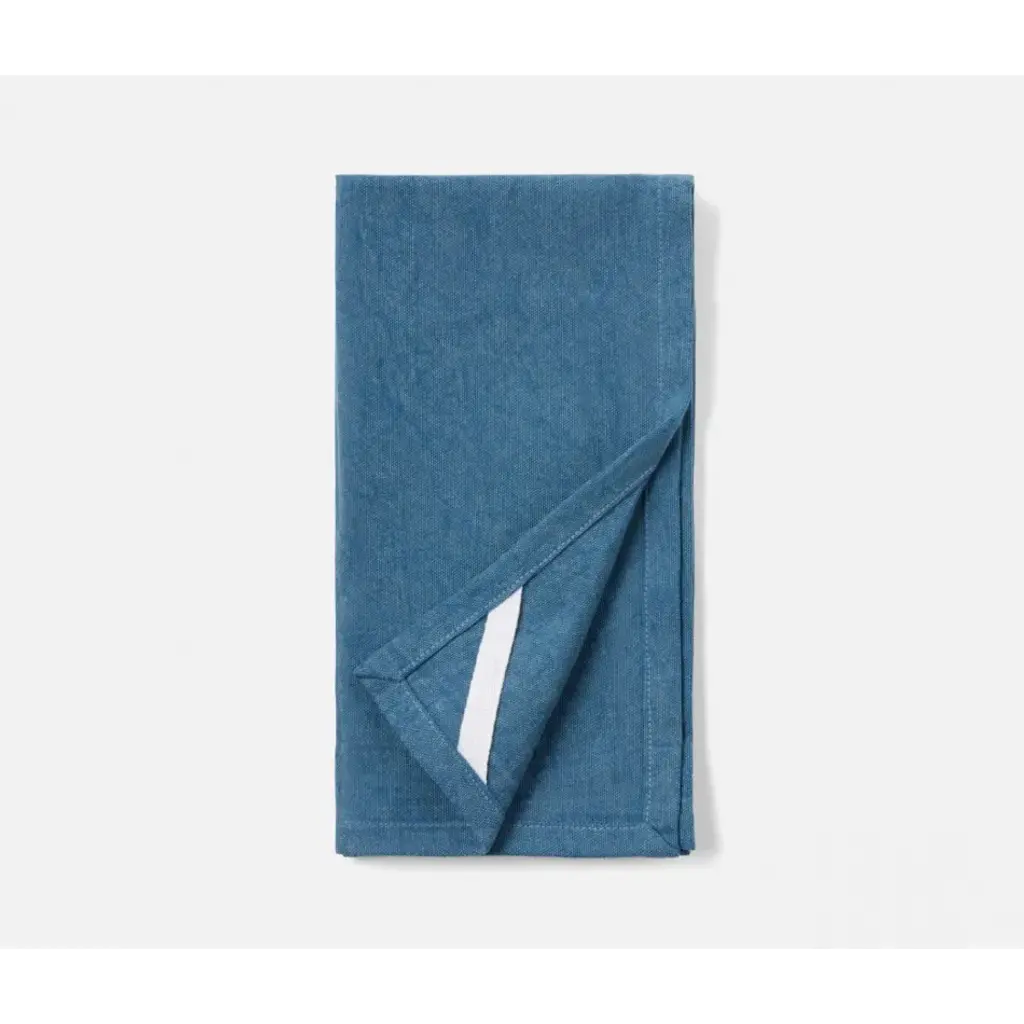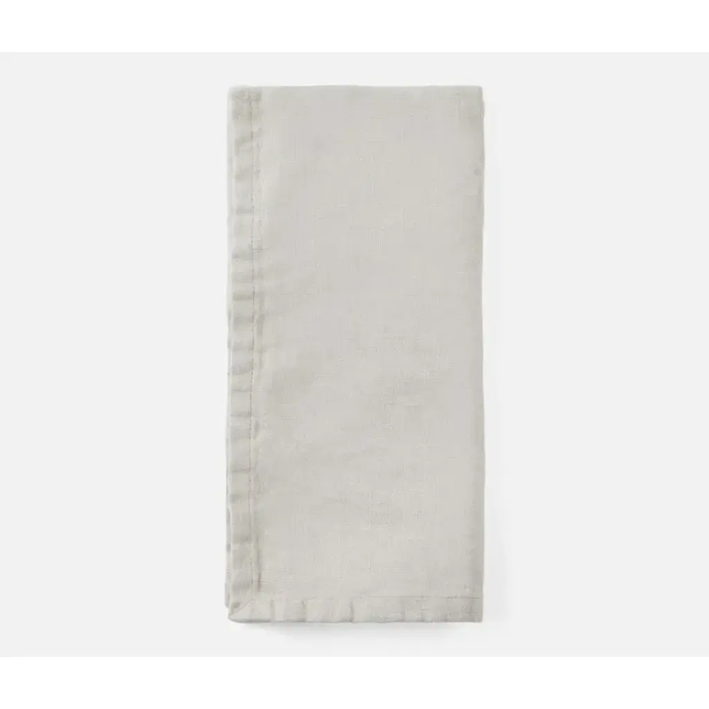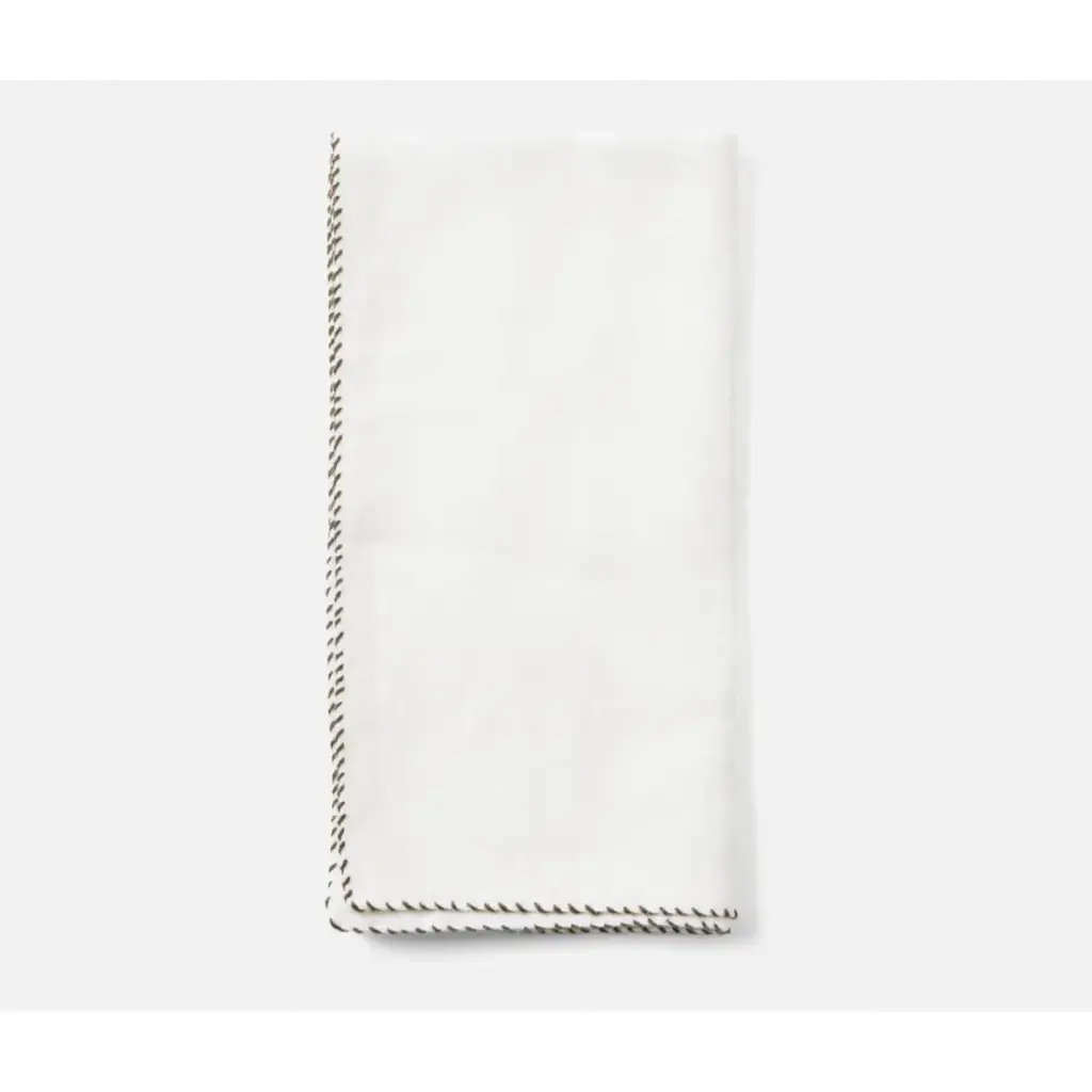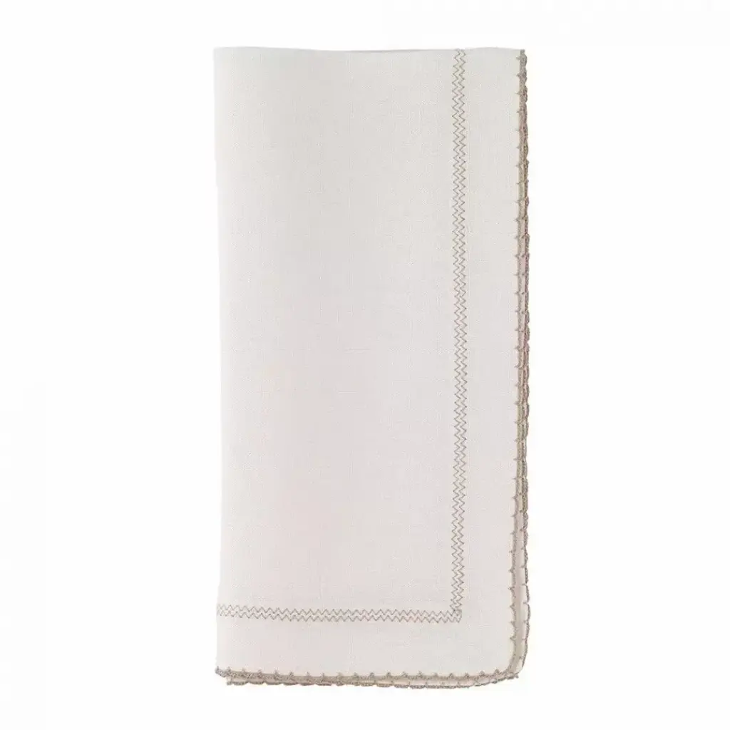 Put the finishing touch on your table settings with this set of four American-made cloth napkins featuring a 1" linen inset. Made from 100% Italian linen, these napkins are machine washable, which means that any meal can easily become a special occasion with these on the table.