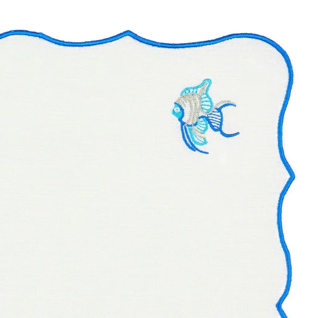 Fish Embroidery Linen Napkins Set Of 2