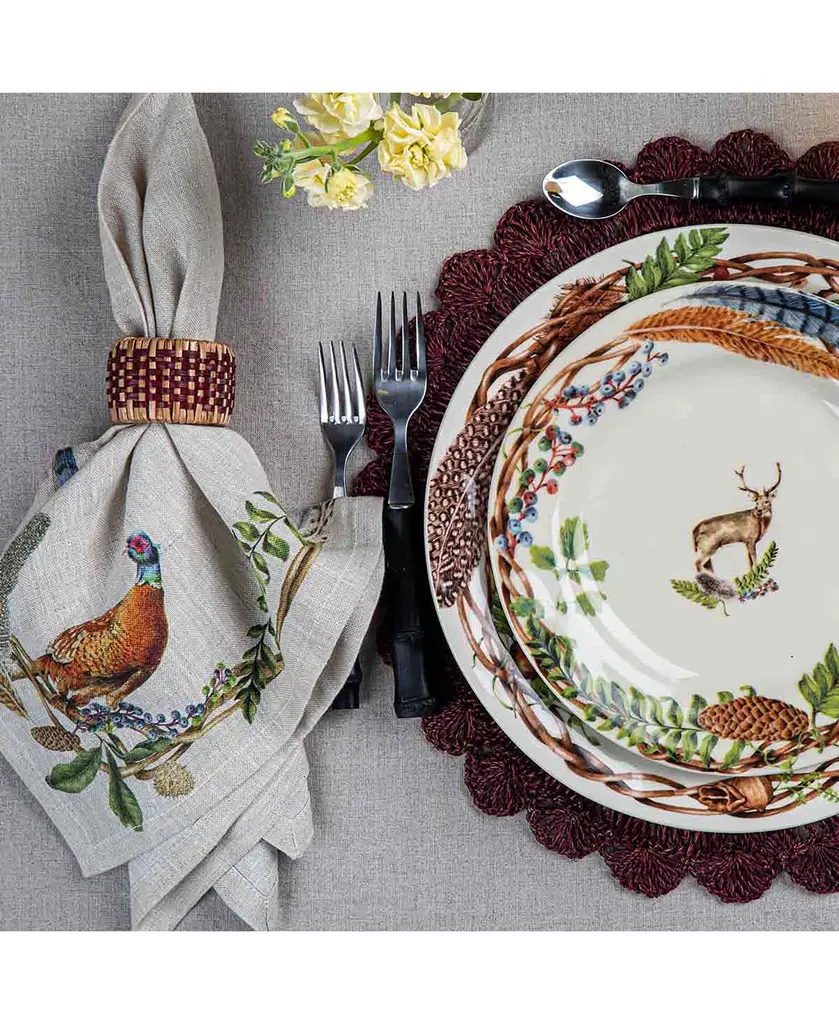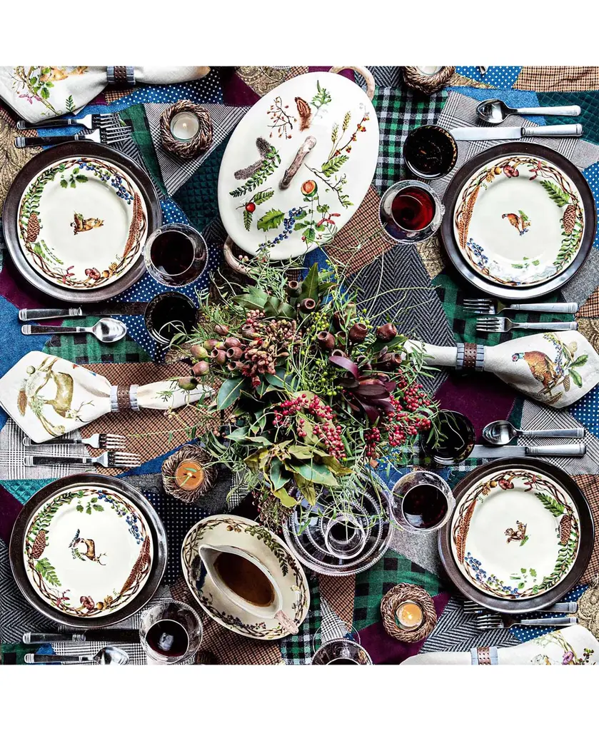 Featuring beautifully rendered tableaus of botanicals, feathers and antlers, this collection brings a charming touch of woodland style to the table.