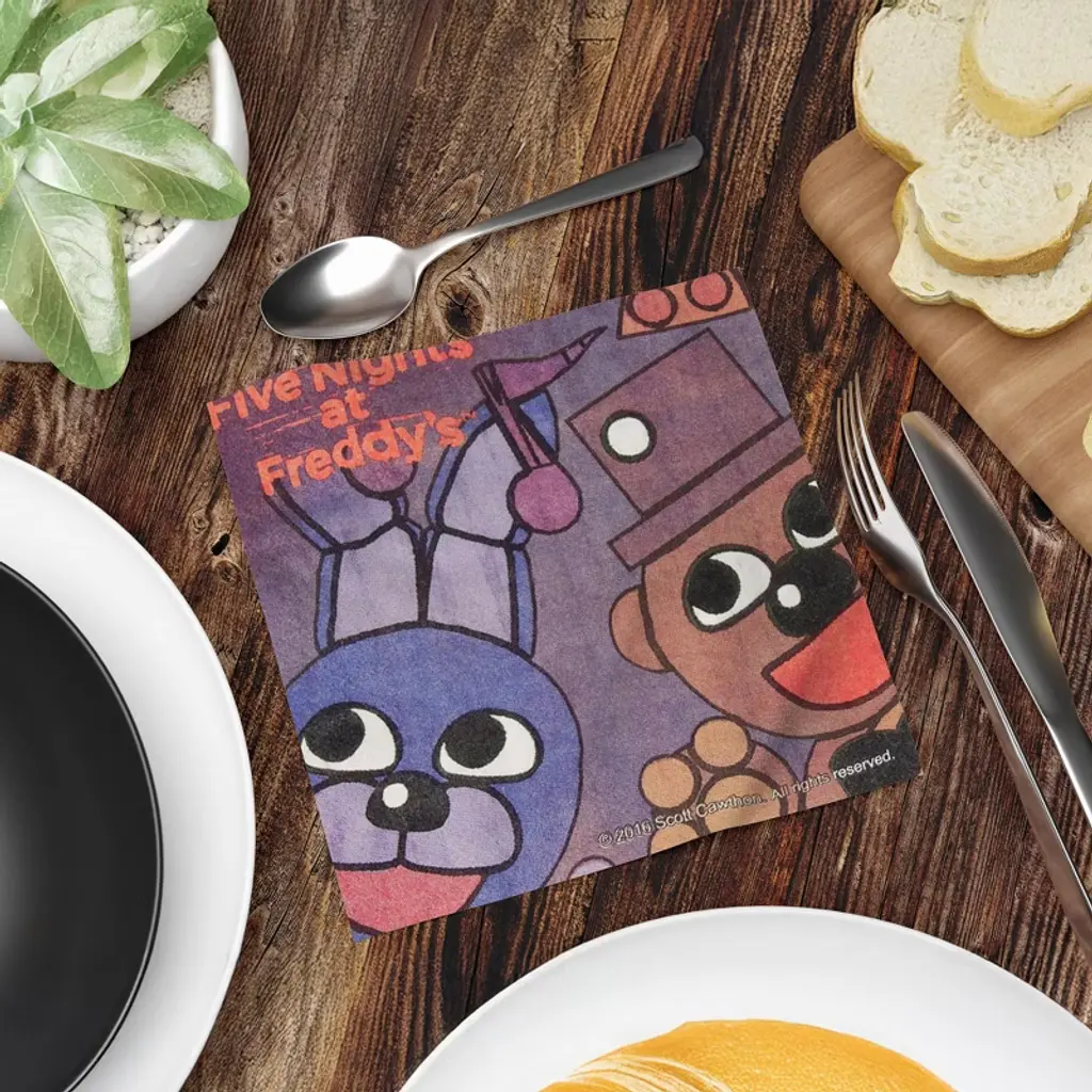 Get your party started right with these Five Nights at Freddy's themed napkins! Each 2-ply paper napkin features their favorite characters: Freddy, Bonnie, and Chica. 16 napkins come in the set. Add these themed party supplies to create an even better party!