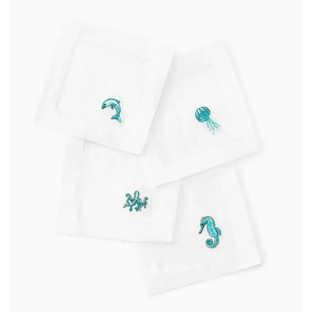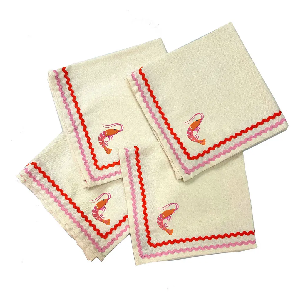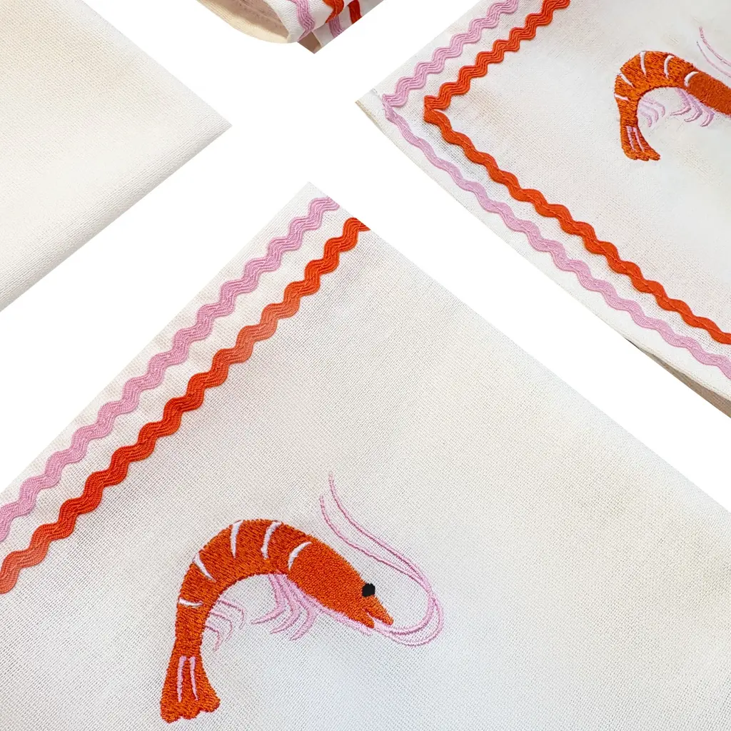 Four Prawn Embroidered Napkins