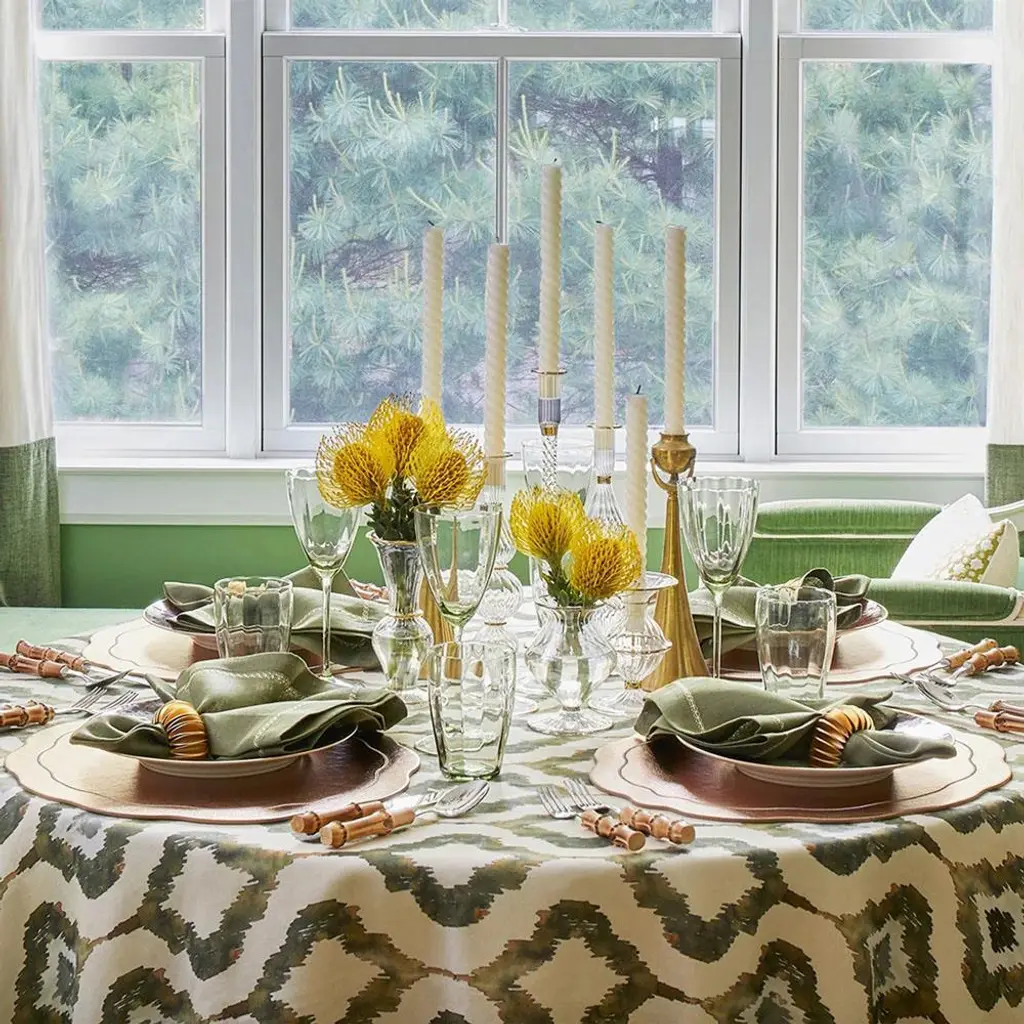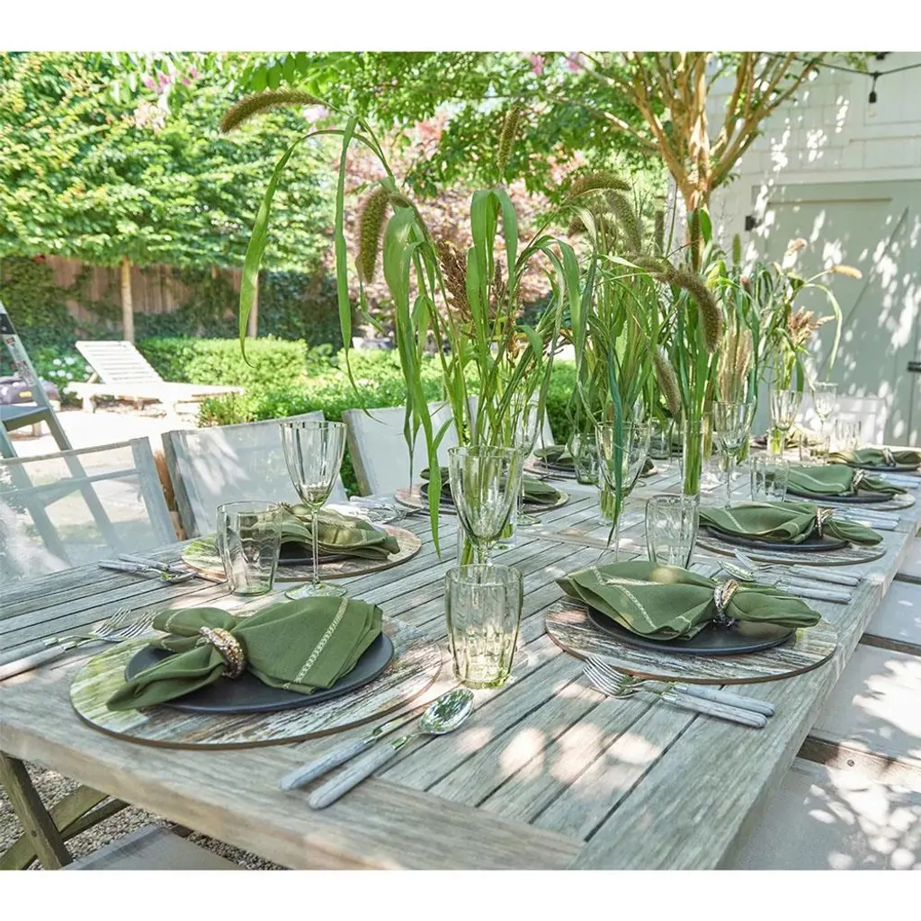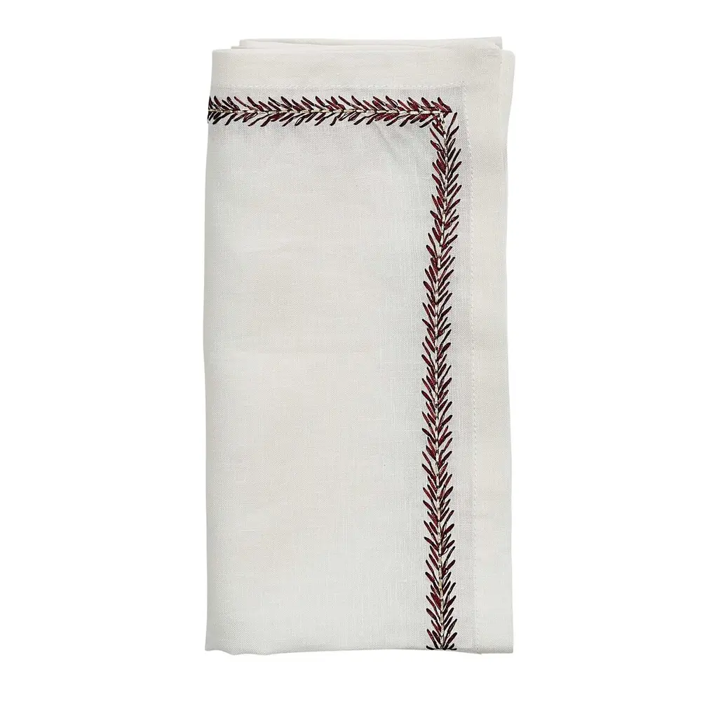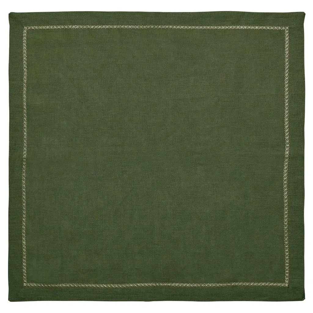 Fran Olive Linen Embroidered Trim Napkin - Set Of 4