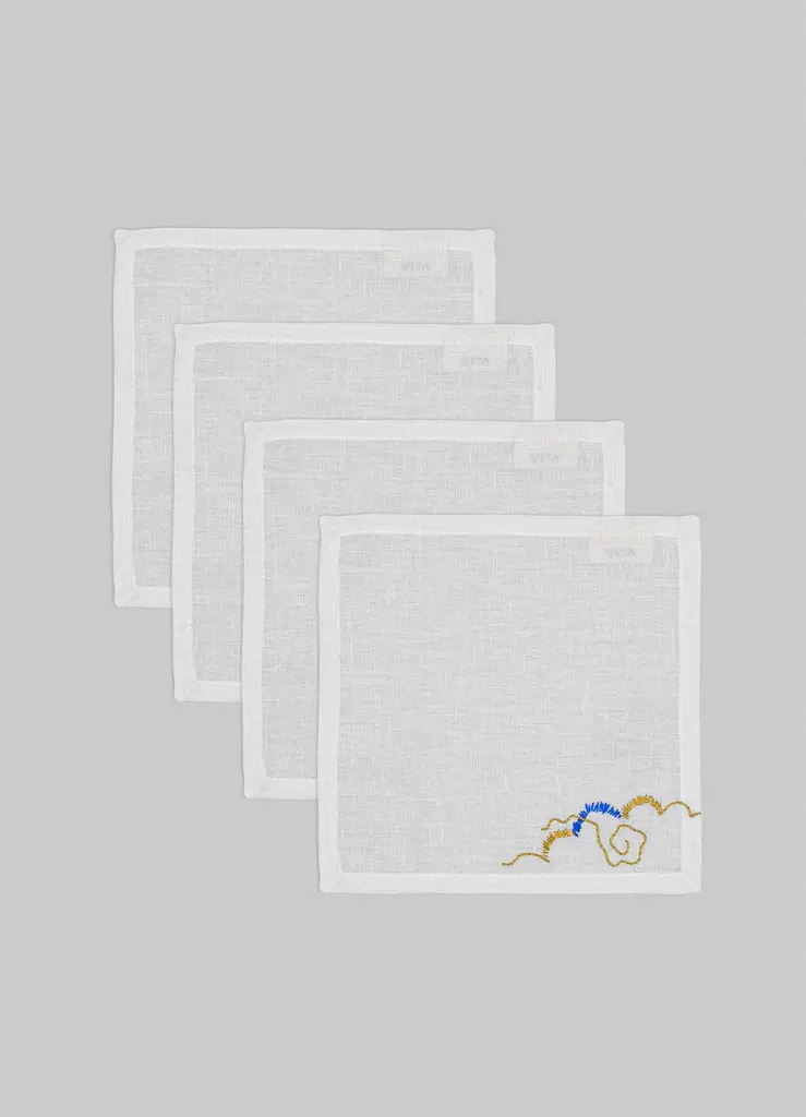 Gajasimha Hand Embroidered White & Gold Cocktail Napkins Set Of 4