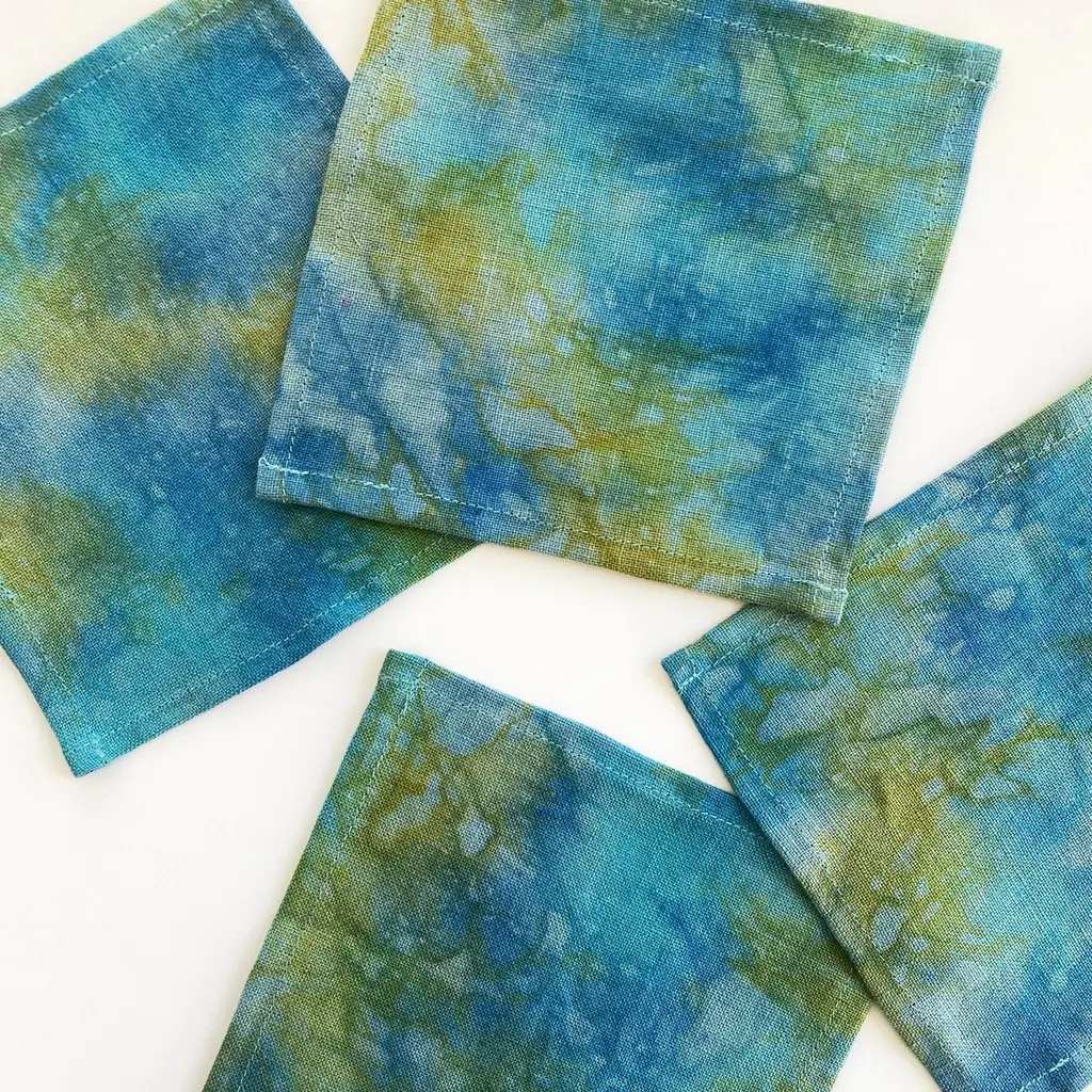 Hand Dyed Cocktail Napkins, Moonrise Abstract Pattern, Set Of Four