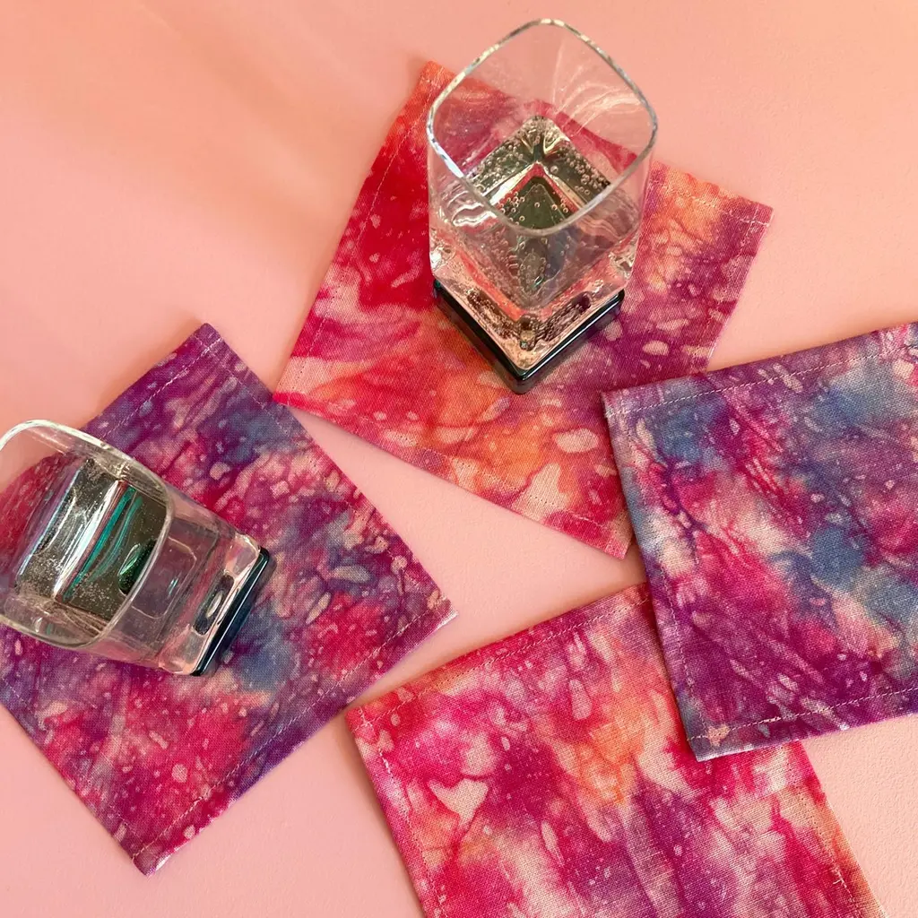 Hand Dyed Cocktail Napkins, Nightfall Abstract Pattern, Set Of Four