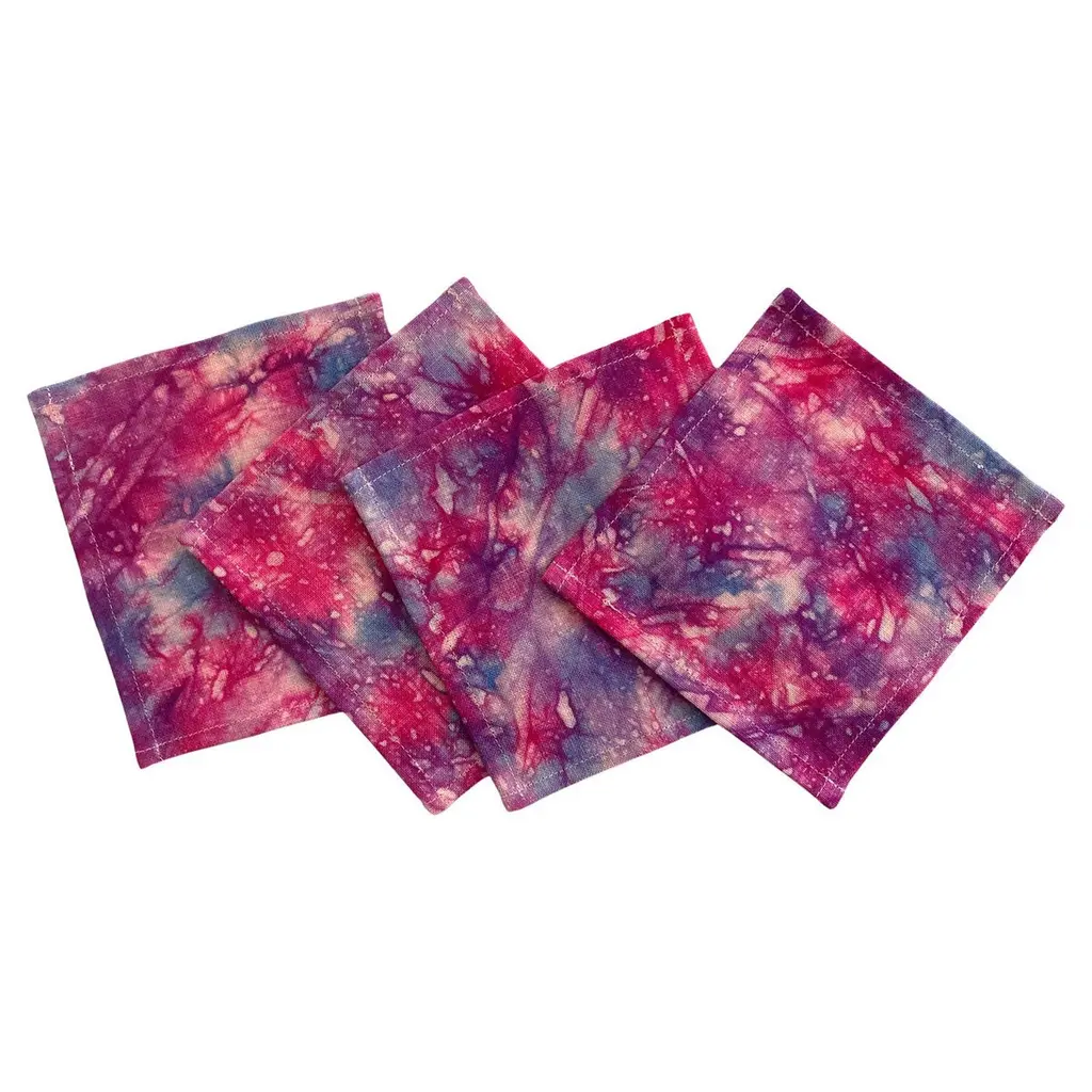 Hand Dyed Linen Napkins, Rose Pink & Indigo Blue Abstract Pattern, Set Of Four