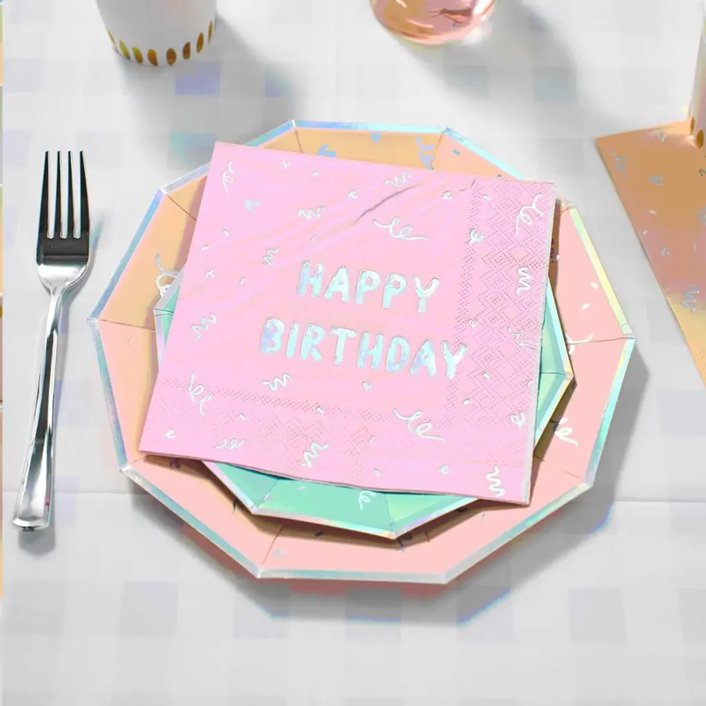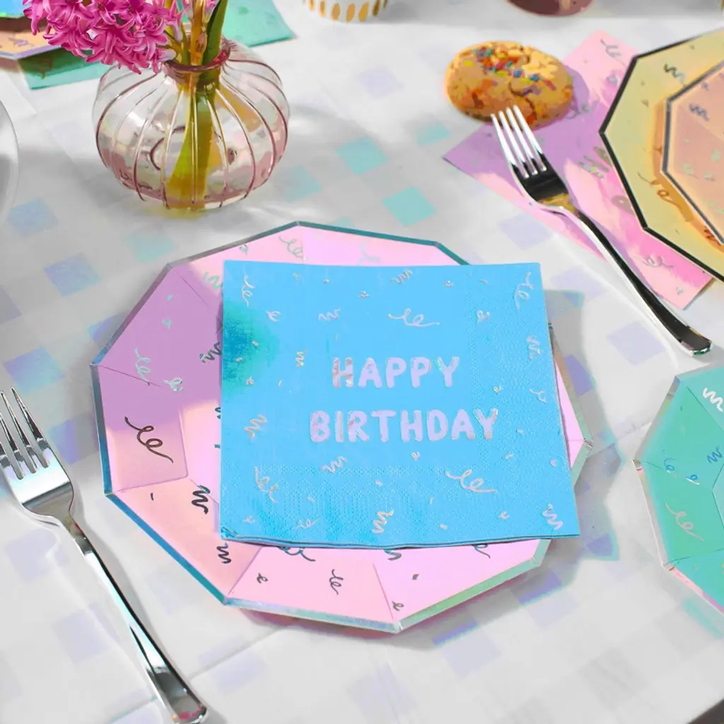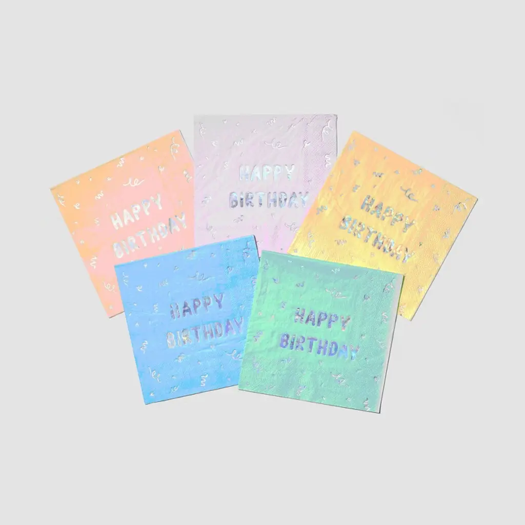 Includes 20 napkins in five designs. 4 of each design. Details 6.5" X 6. 5" paper napkinsPack of 20Recyclable and compostable!