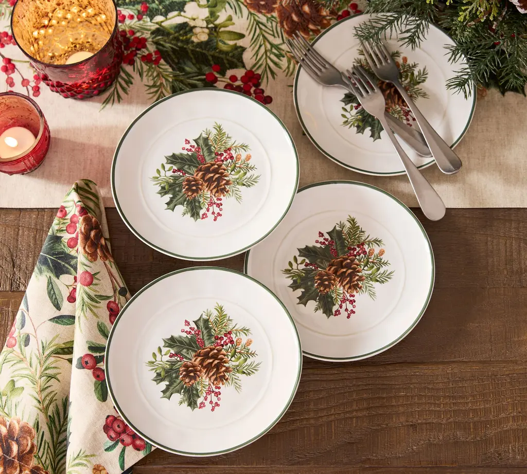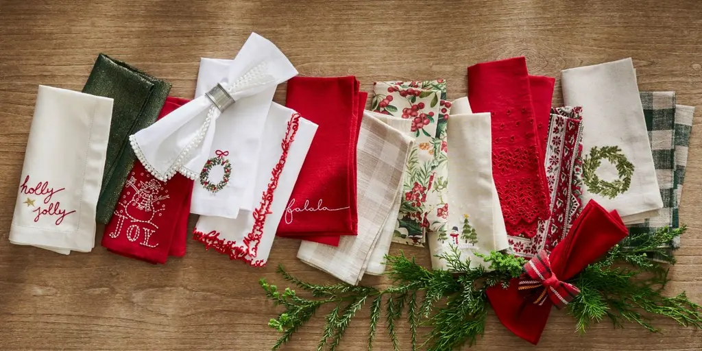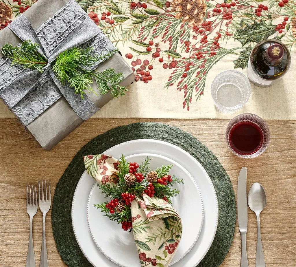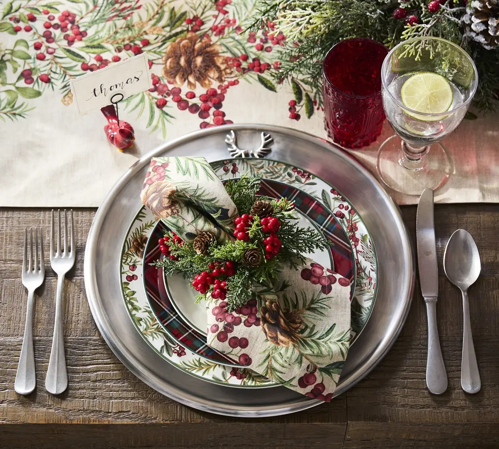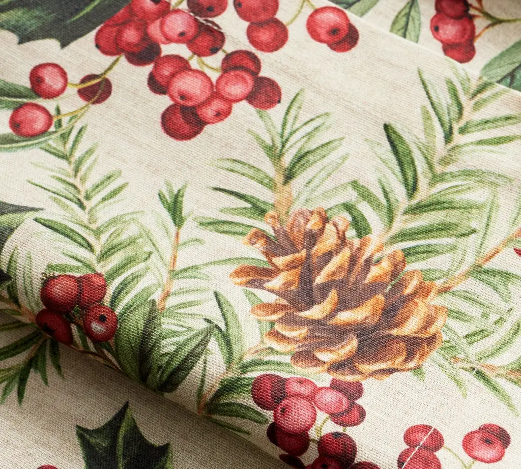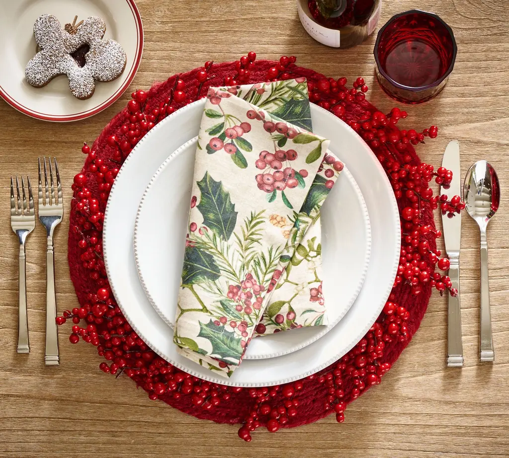 Fragrant pine branches and verdant holly leaves dotted with bright red berries: You can always count on these defining symbols of the season to set a festive scene. Crafted of a cotton-linen blend, the slightly textured fabric feels rustic yet refined and gets softer with every wash. Pair them with our Holly Berry Stoneware collection to complete your Christmas table.