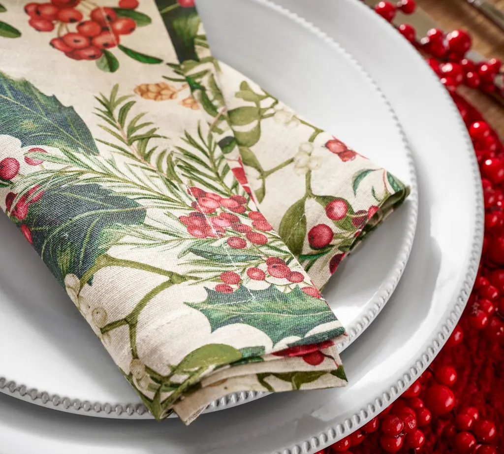 Holly Berry Cotton/linen Napkins - Set Of 4