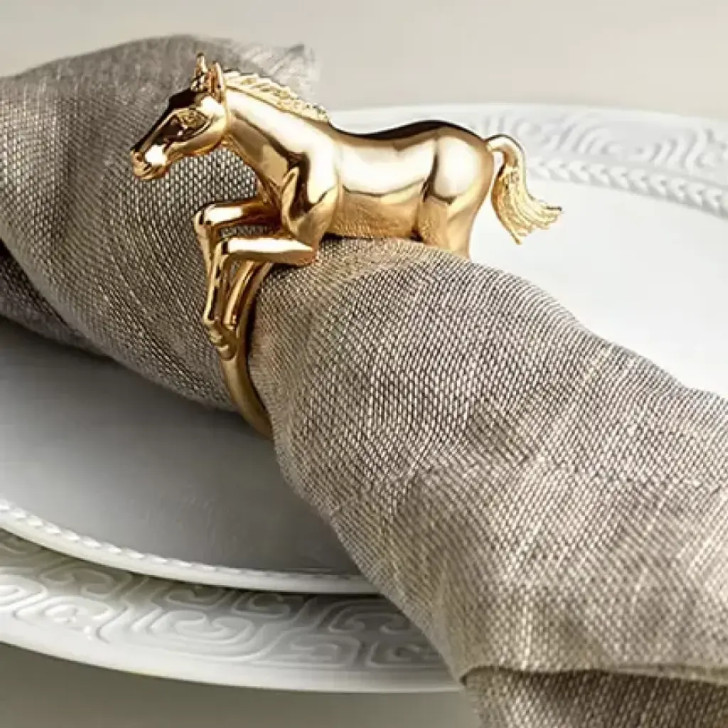 Combining classical elegance with charming whimsy, L’OBJET Napkin Jewels accessorize the dining experience. Meticulously handcrafted, plated with 24K gold or platinum. Prior to founding L’Objet in 2004, Israeli-born Elad Yifrach was a successful designer in Beverly Hills. He was creating beautiful interiors, but he was frustrated by the limited options available in home accessories, so he set out to create something better. L’Objet’s collections are diverse, but they are almost always inspired by nature and architecture. Many of his exquisite serving pieces rest in a base of hand-crafted gold foliage, other pieces feature intricate design and beadwork, and some of the most striking objects actually look like miniature buildings. And despite the lux feel, much of the line is practical with just a touch of whimsy.