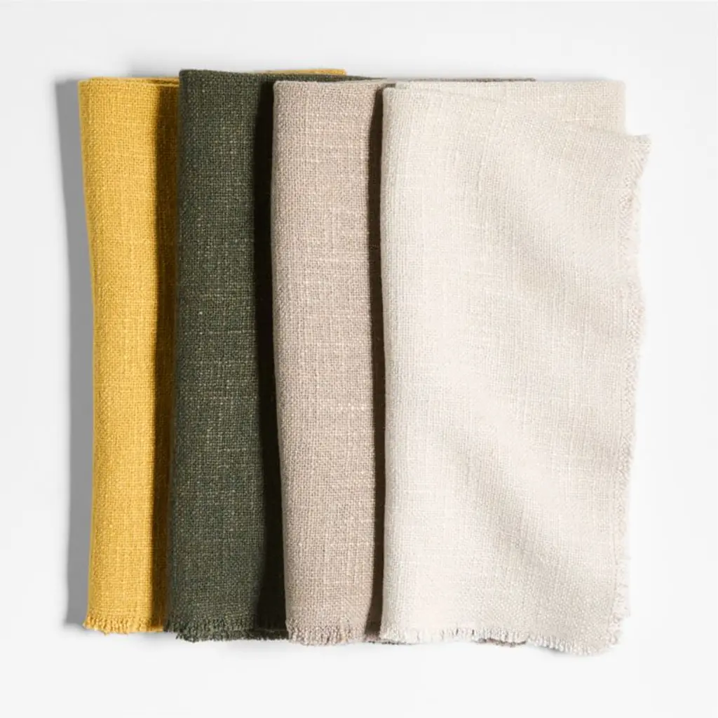 Inspired by carefree weekends in the Hudson Valley, our Hudson dinner napkins set the mood with its easy, breezy style. Yarn-dyed a natural neutral, the linen-blend napkin relaxes the table with organic texture and the unstructured look of fringed edges.