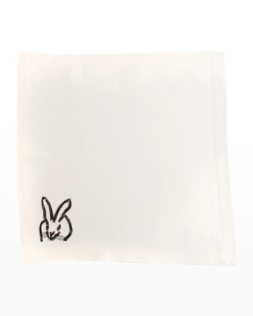 Hunt Slonem Black Painted Bunny Embroidered Linen Dinner Napkin, 20"sq. | Horchow