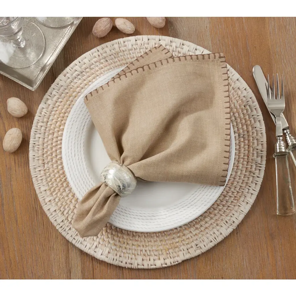 Cloth napkins are a solid investment for any tablescape. They produce less waste, they cost less in the long run since they're reusable, and most importantly, they can’t be ripped to shreds by your little ones. Plus, they provide a better presentation! Take these napkins, for instance: Crafted from 100% cotton, they're machine washable for effortless cleanup. Arriving in a set of four, they feature a solid hue accented by contrast whipstitching for a pop of texture.
