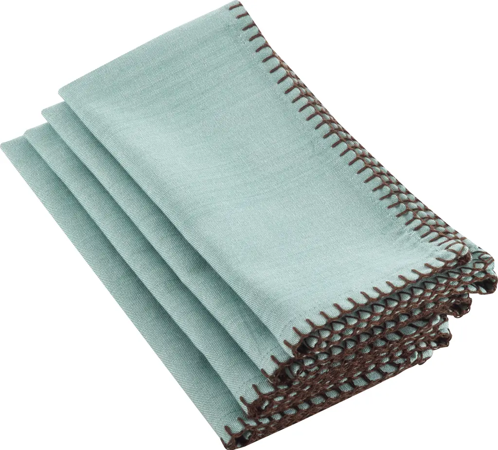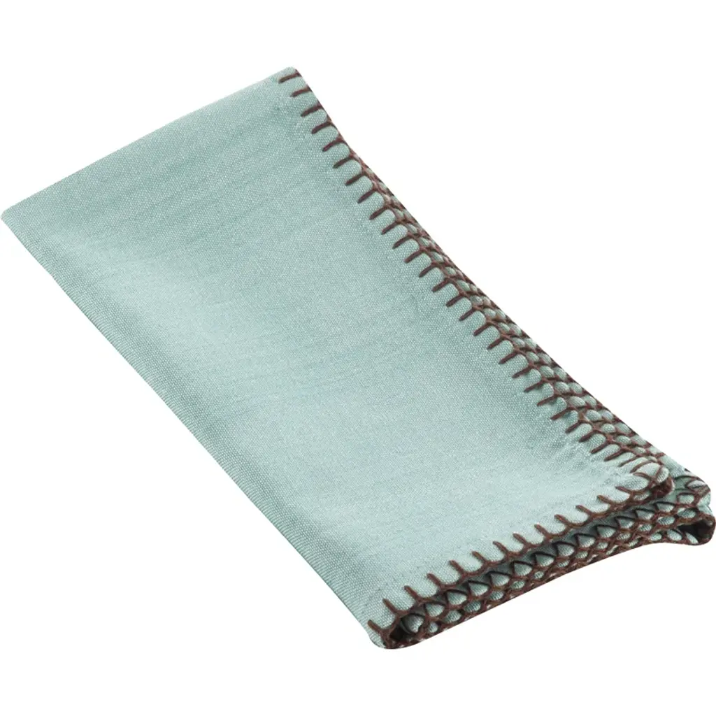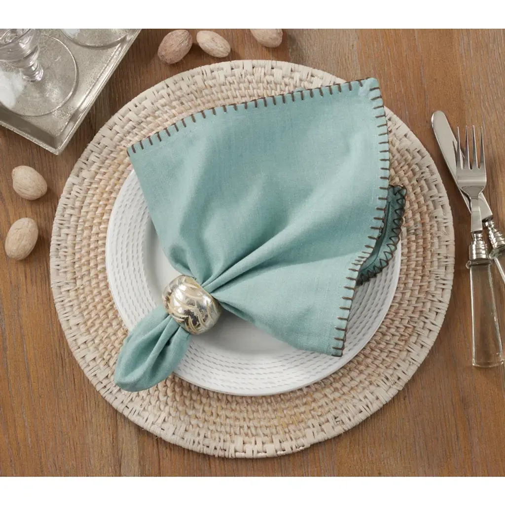 Cloth napkins are a solid investment for any tablescape. They produce less waste, they cost less in the long run since they're reusable, and most importantly, they can’t be ripped to shreds by your little ones. Plus, they provide a better presentation! Take these napkins, for instance: Crafted from 100% cotton, they're machine washable for effortless cleanup. Arriving in a set of four, they feature a solid hue accented by contrast whipstitching for a pop of texture.