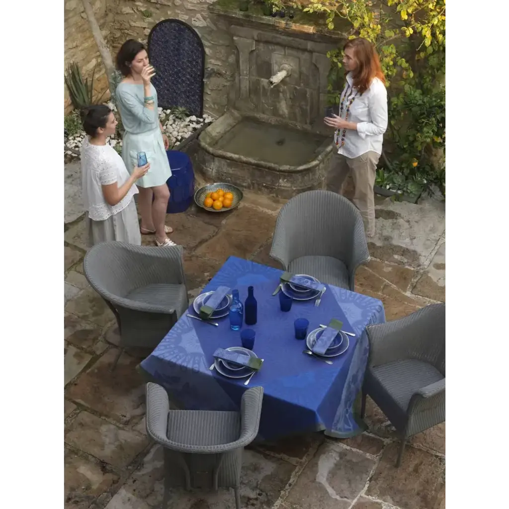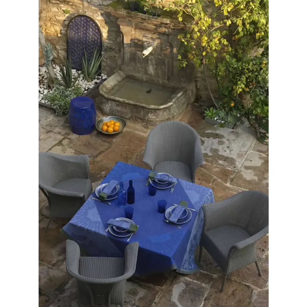 Te colors of Jemaa el Fna Square and the stucco fligree of Moorish palaces: Oriental Garden draws its inspiration from the Marrakesh that was so dear to Yves Saint-Laurent and will poetically immerse you in the heart of the magical oasis that is Majorelle Garden. Since 1888, Le Jacquard Francais has created a collection of table linens without equal. Weavers, warp beamers, knotters and other specialists work in harmony to perfect the weaves and colors of all of their linens. Classic Le Jacquard Francais linens are characterized by using framed woven patterns to create timeless tablecloths, napkins, placemats and table runners that will beautify your tables for many years. Le Jacquard Francais coated tablecloths are made of 100% cotton weave with long fibers. They are waterproof and stain-resistant thanks to a patented and exclusive acrylic coating that withstands washing. Newly introduced, LJF by Le Jacquard Francais is a more casual line of contemporary looks that mixes colors and patterns and plays with graphics. Practical and easy to use, these tablecloths will stand up to frequent use in the kitchen or patio.