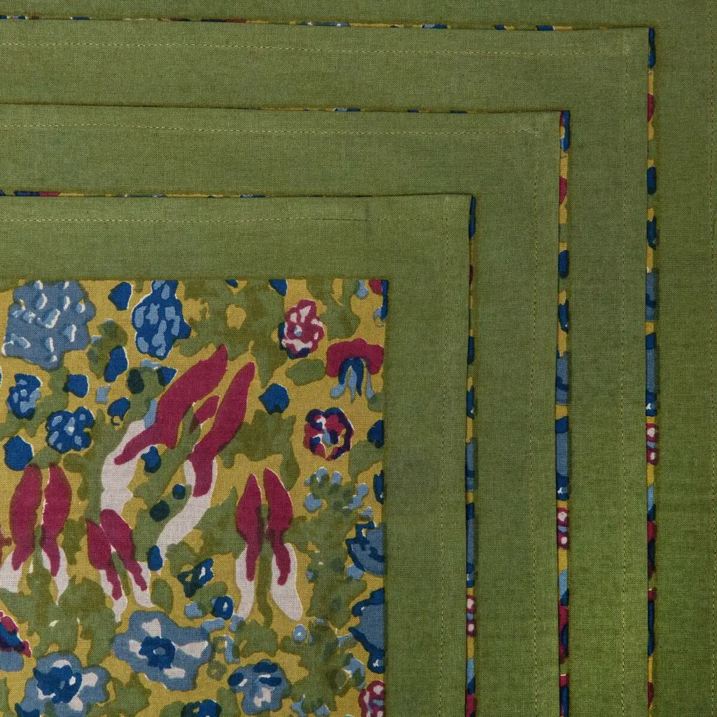 Verdant and lush, the Jardin collection is inspired by the luxuriant, loosely tended gardens of Southern France. The vibrant watercolors of this French linen will enliven any room or outdoor table with a sense of understated beauty and style, whether in spring, summer, or beyond. This fine linen has been carefully handprinted by skilled artisans using a time-honored technique, resulting in a singular piece of craftsmanship.
