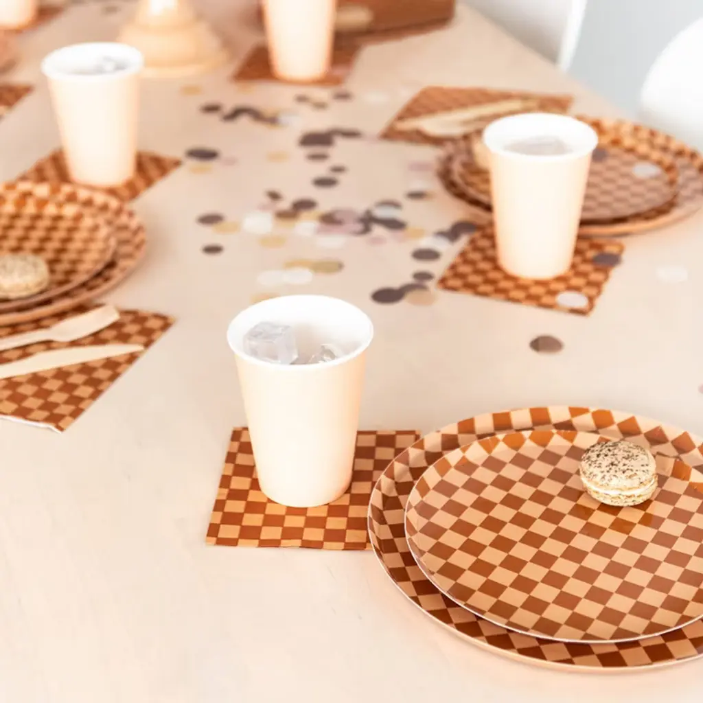Jollity & Co. - Check It! Cafè Con Leche Cocktail Napkins - Pack Of 20 Paper Napkins