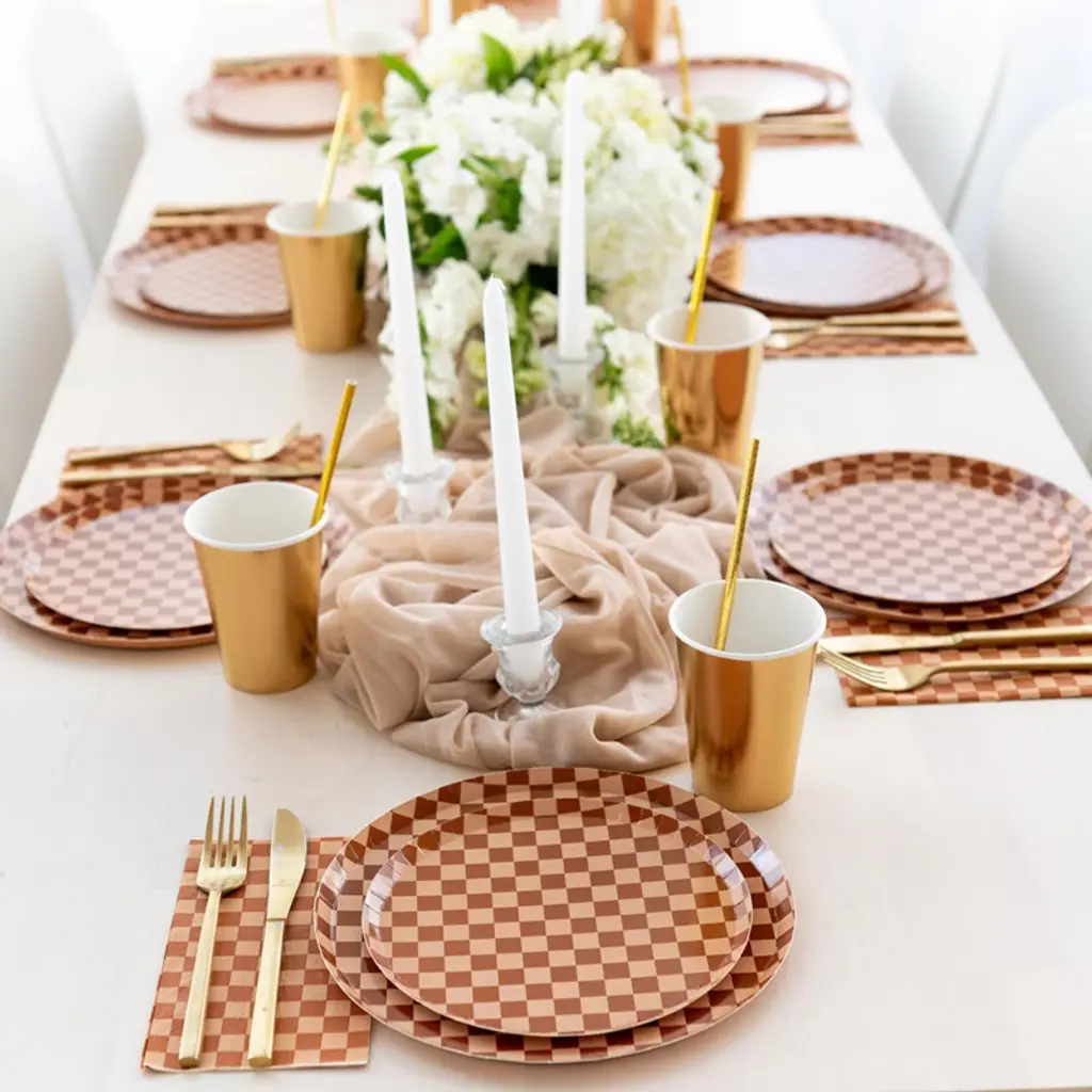 Jollity & Co. - Check It! Cafè Con Leche Guest Napkins - Pack Of 16 Paper Napkins