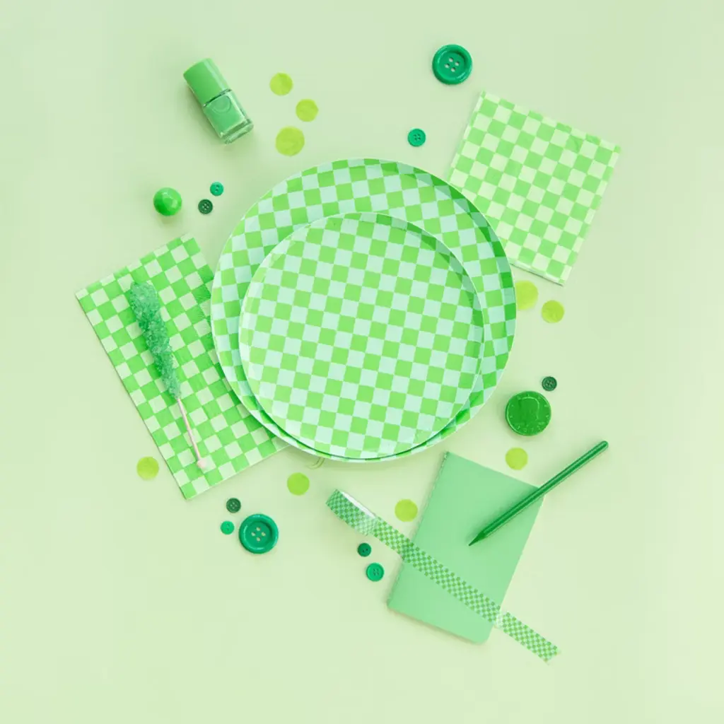 Inspired by the classic skater shoe, our Check It collection is sure to make your party checklist! The two-tone plates and checkered print napkins are perfect for mixing and matching with your favorite party pieces or used as stand-alone items. Package contains 16 paper napkinsEach napkin measures approximately 8 inches tall by 4.25 inches wideNot safe for microwave use
