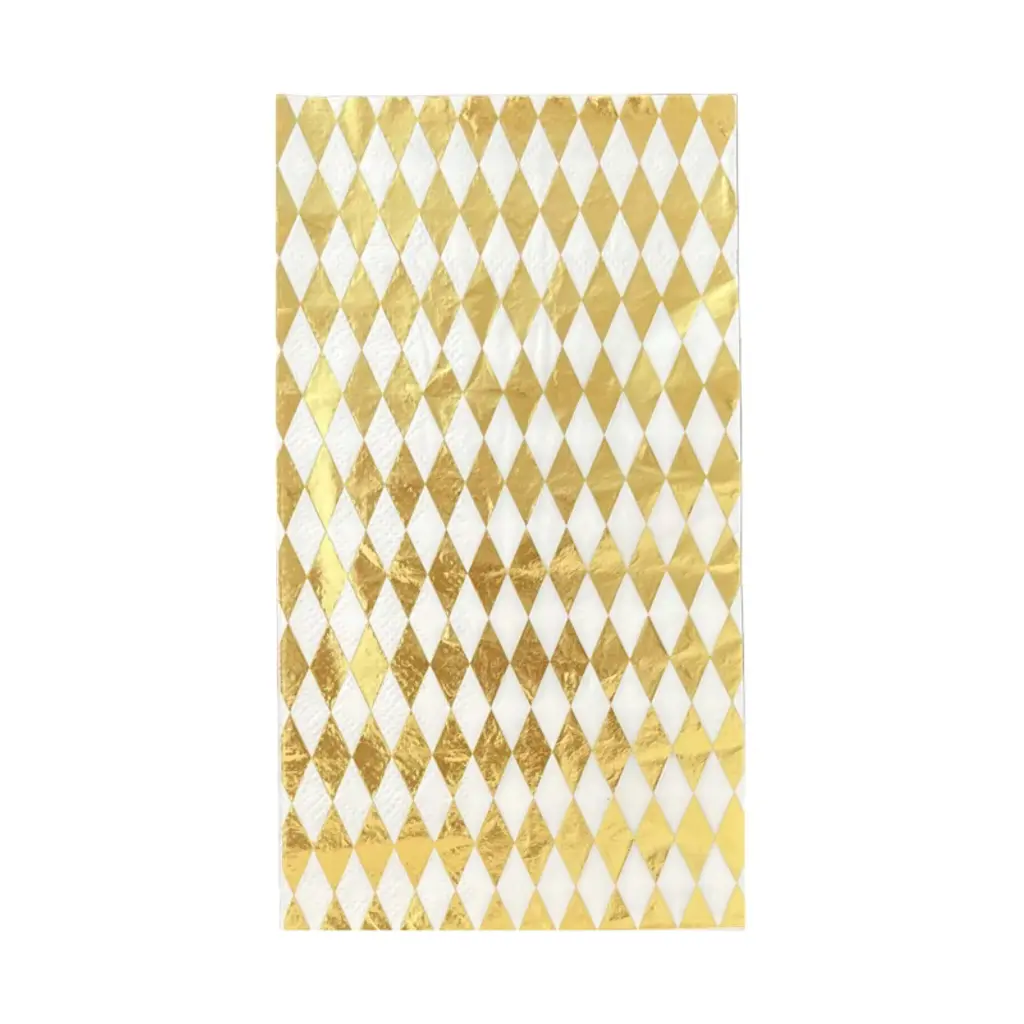 Jollity & Co. - Check It! Peaches N' Cream Harlequin Check Guest Napkins - Pack Of 16 Paper Napkins