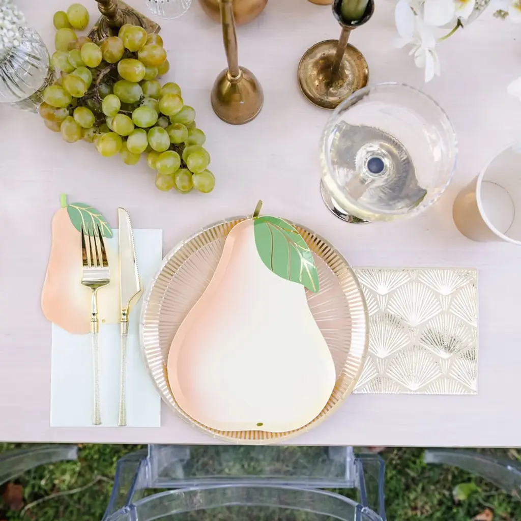 A little sweet, a little sophisticated—our Pear Large Napkins are the perfect pairing for cozy dinners and elegant affairs alike. Because the best moments are meant to be savored. Pack of 16 Large NapkinsPaper NapkinsMeasures 7.5" x 6" foldedNot safe for microwave use