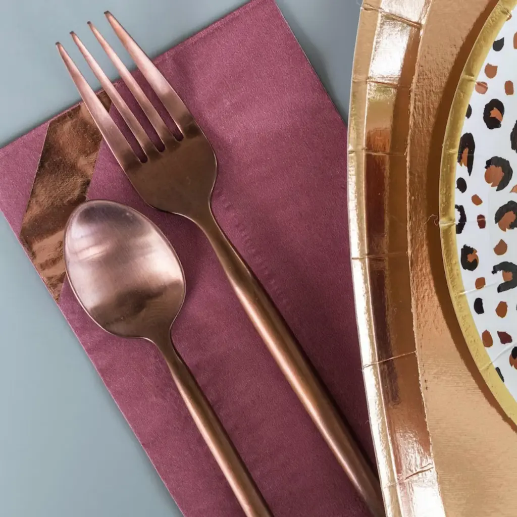 Beautiful and versatile, the Jollity & Co Mauve-elous collection is created to bring stylish one-time use party goods to the most elegant of occasions. Inspired by the beauty that is created in art, the collection features a mix of brushstroke and paint splatter elements with a two-tone mauve color pallet and rose gold finishes. Package contains 16 paper napkinsEach napkin measures approximately 8 inches tall by 4.25 inches wideNot safe for microwave use