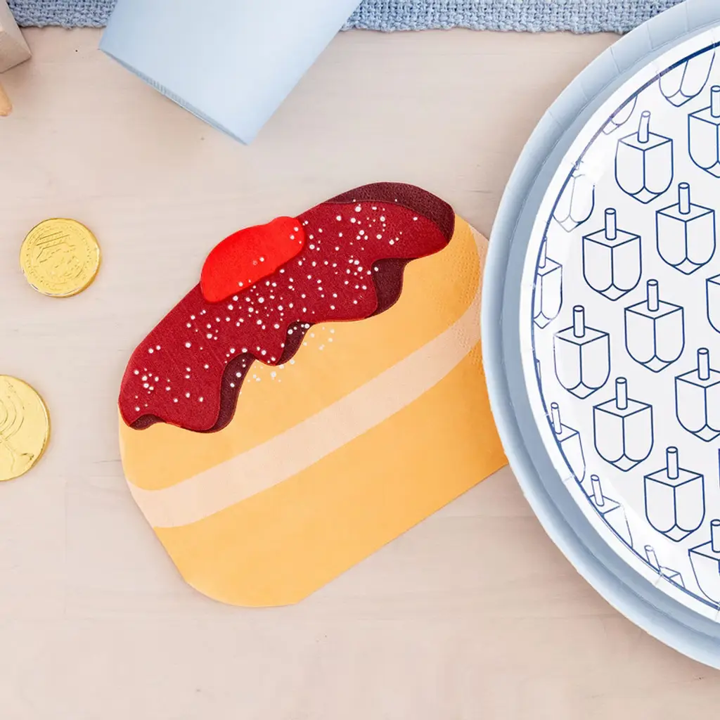 Donut miss out on these festive Sufganiyah Shaped Napkins! A part of the Jollity & Co Happy Challah-Days Collection, this multipack of large napkins will have you covered all eight nights. Donut miss out on this festive addition to your holiday celebrations! Package contains 16 paper napkinsEach napkin measures approximately 6.5 inches foldedNot safe for microwave use
