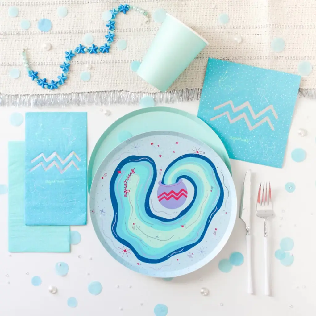 It’s giving cosmic energy! Each piece in this collection is designed to reflect each of the twelve astrological signs, bringing celestial charm to your celebrations. Bold Leo? Dreamy Pisces? The stars are aligning for this new collection! Created for our deep-thinking, innovative and creative girlies, this Aquarius Guest Napkin captures the essence of creative and free-thinking souls. Pack of 16 Guest NapkinsMeasures 8" x 4.25"Paper NapkinsNot safe for microwave use