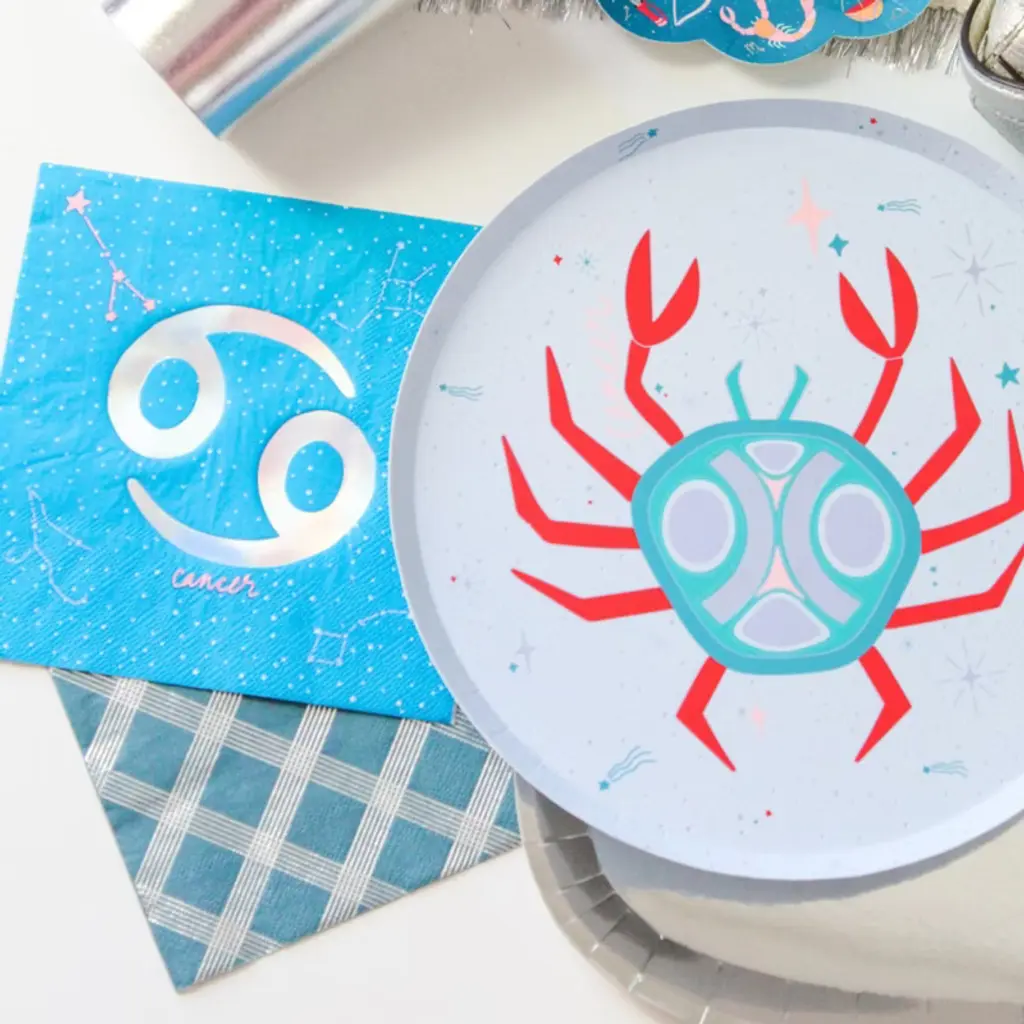 It’s giving cosmic energy! Each piece in this collection is designed to reflect each of the twelve astrological signs, bringing celestial charm to your celebrations. Bold Leo? Dreamy Pisces? The stars are aligning for this new collection! Soft and calming, this Cancer Large Napkin captures the nurturing side of Cancers and is perfect for our intuitive and sentimental besties. Pack of 16 Large NapkinsMeasures 6.5" x 6.5"Paper NapkinsNot safe for microwave use