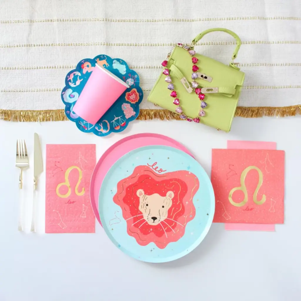 It’s giving cosmic energy! Each piece in this collection is designed to reflect each of the twelve astrological signs, bringing celestial charm to your celebrations. Bold Leo? Dreamy Pisces? The stars are aligning for this new collection! Regal and radiant, our Leo Guest Napkin is a celebration of our lion-hearted leaders. Pack of 16 Guest NapkinsMeasures 8" x 4.25"Paper NapkinsNot safe microwave use