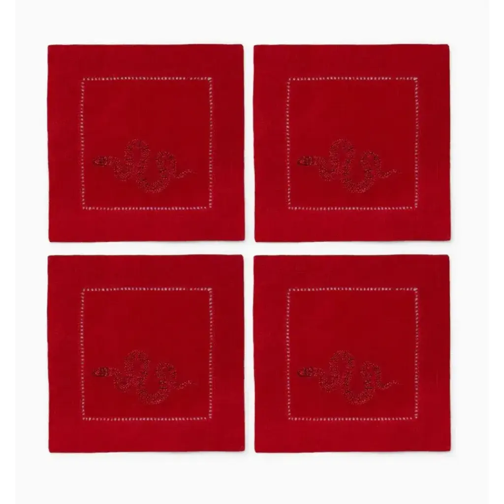 Lny2025 Set Of 4 Snake Cocktail Napkin 6 X 6" Red/red