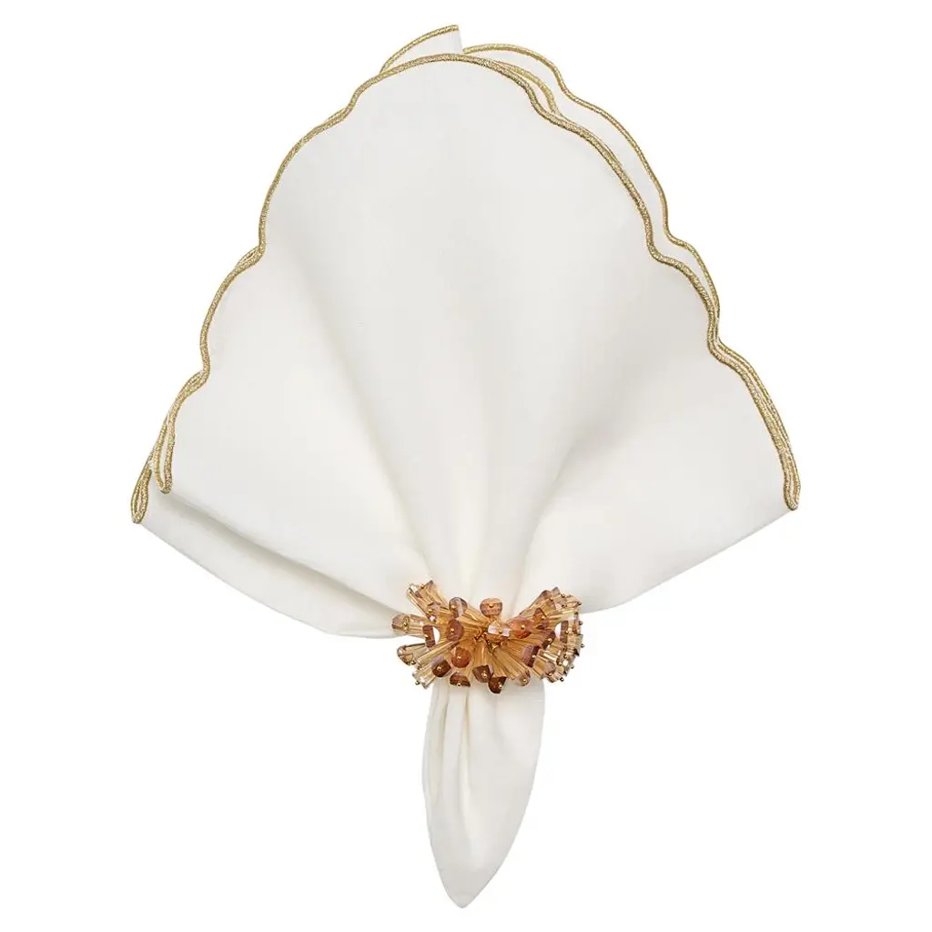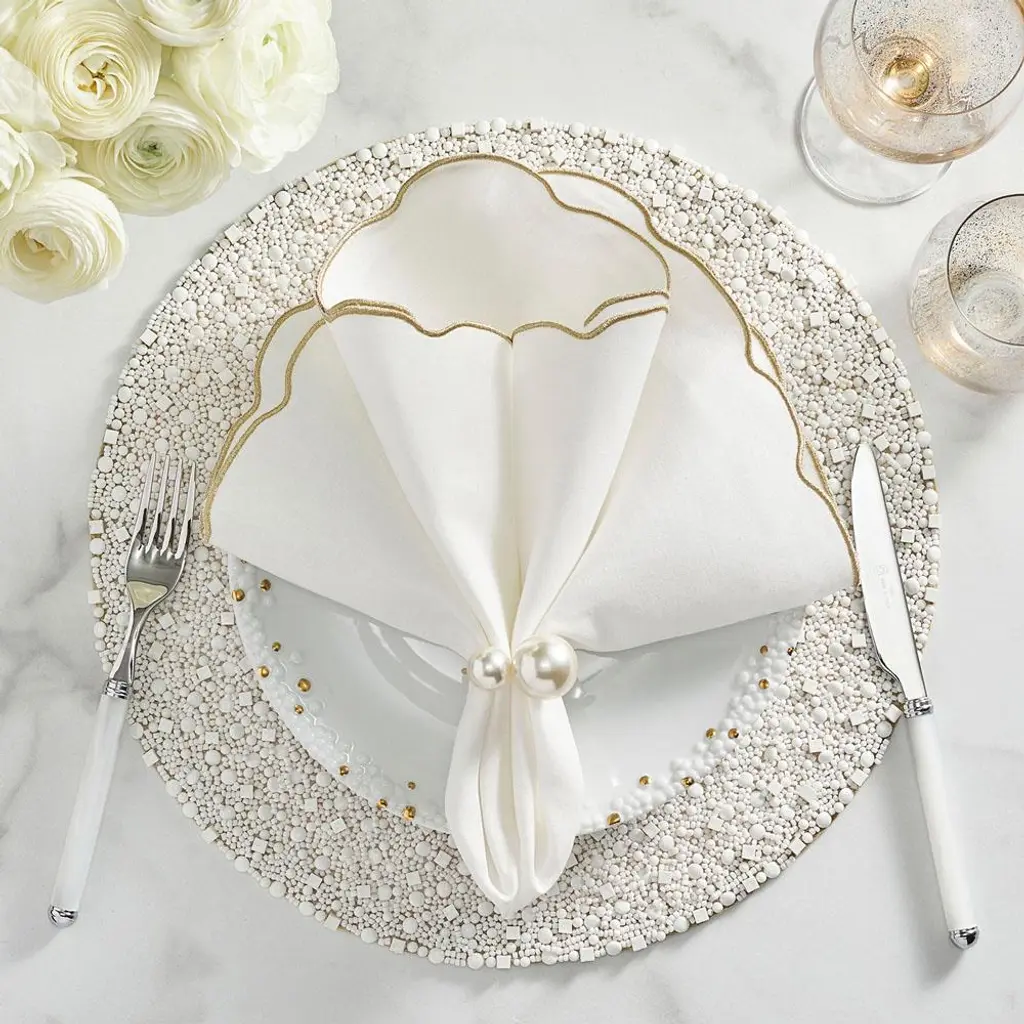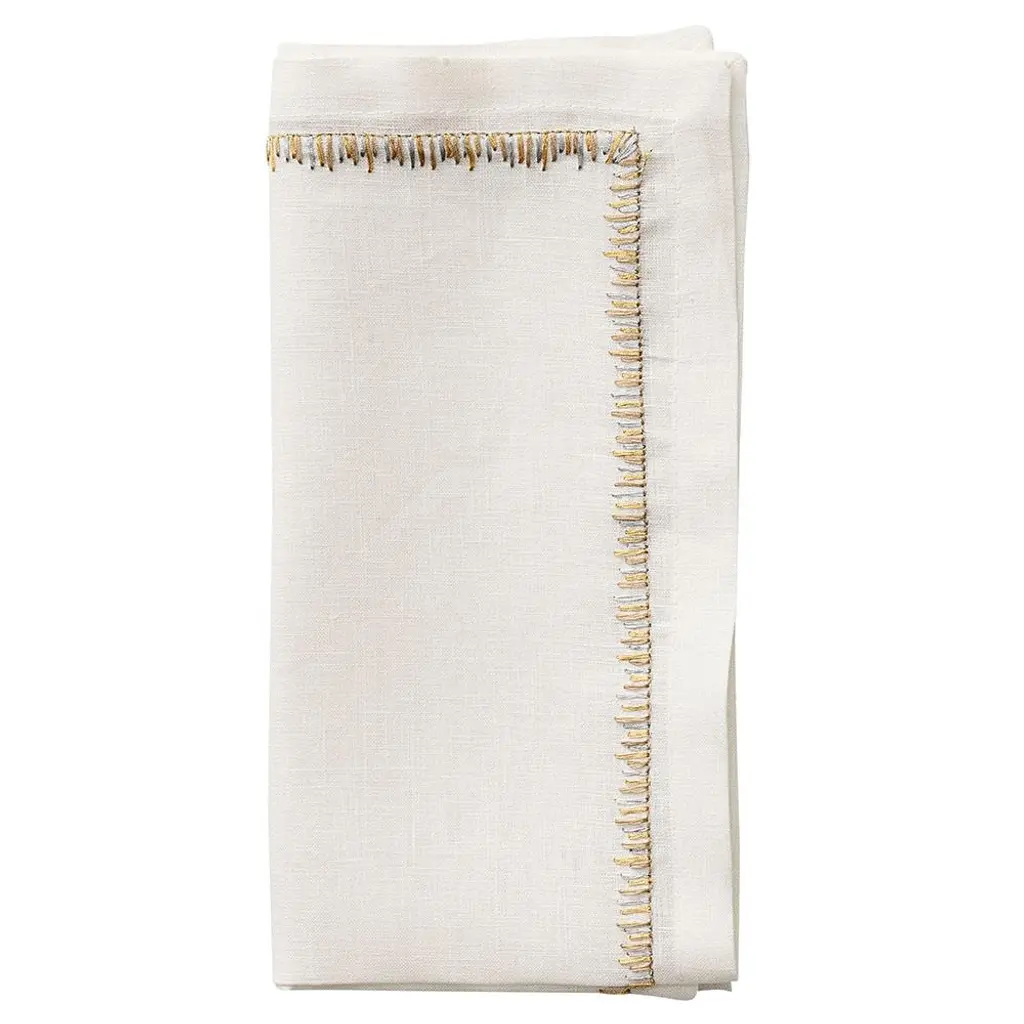 Luminance Regency White Linen Gold Trim Napkin - Set Of 4