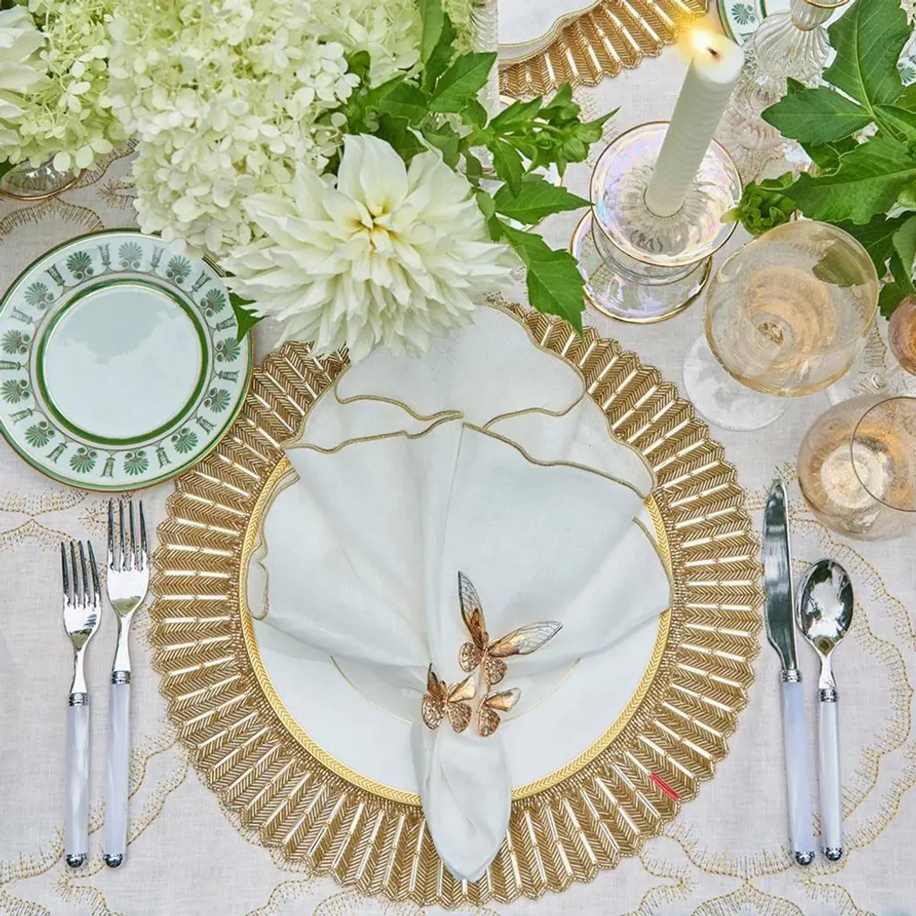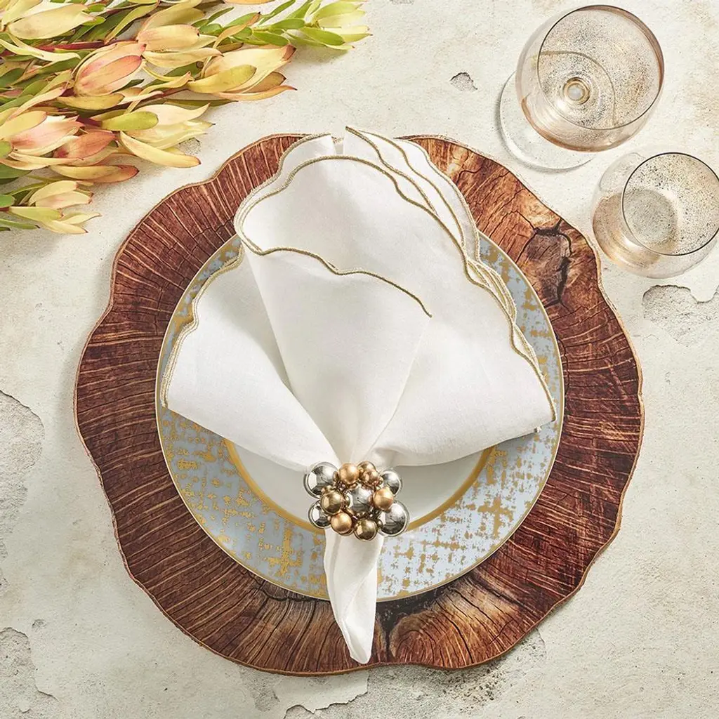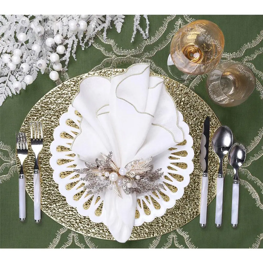 Luminance Regency White Linen Gold Trim Napkin - Set Of 4