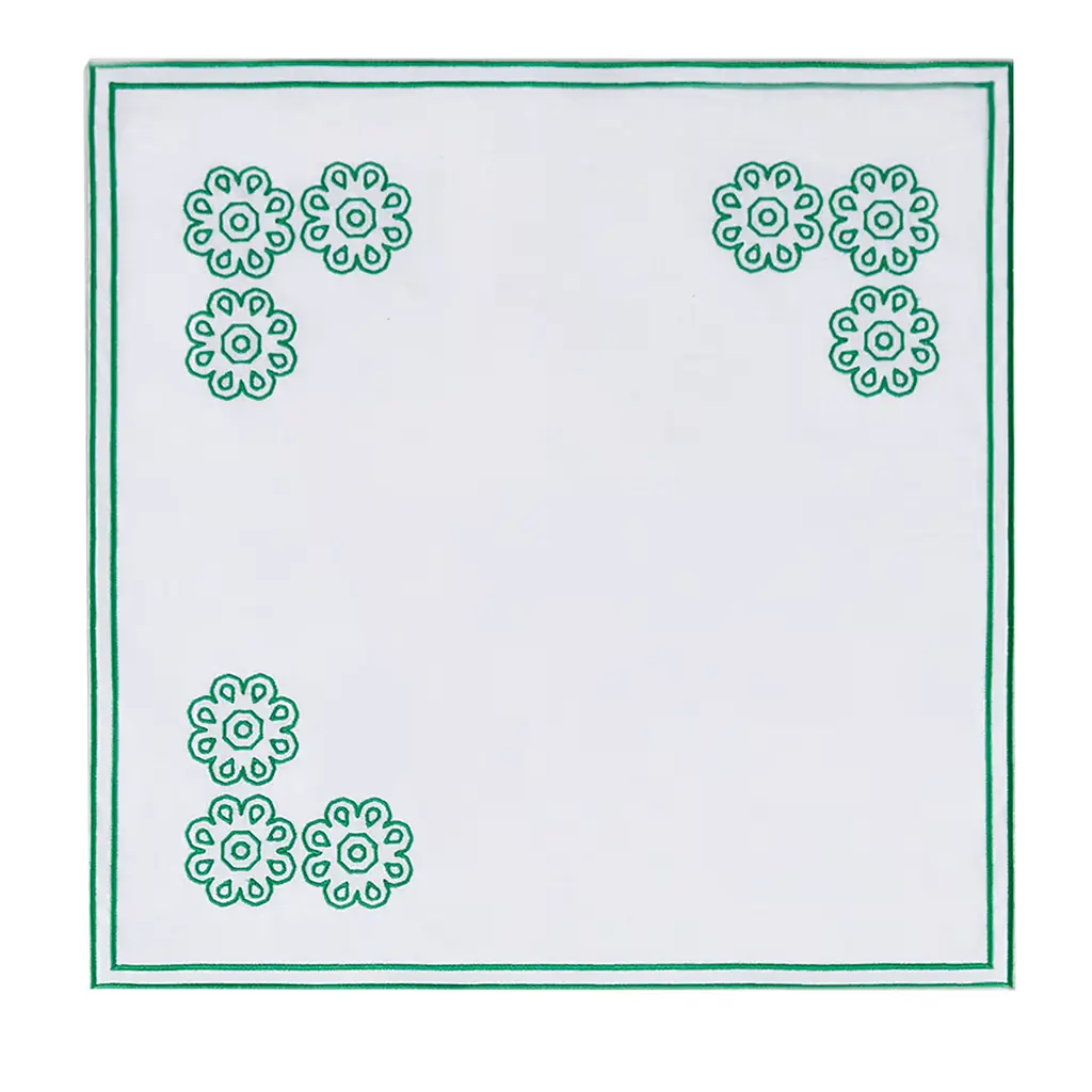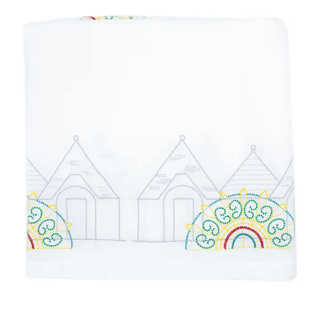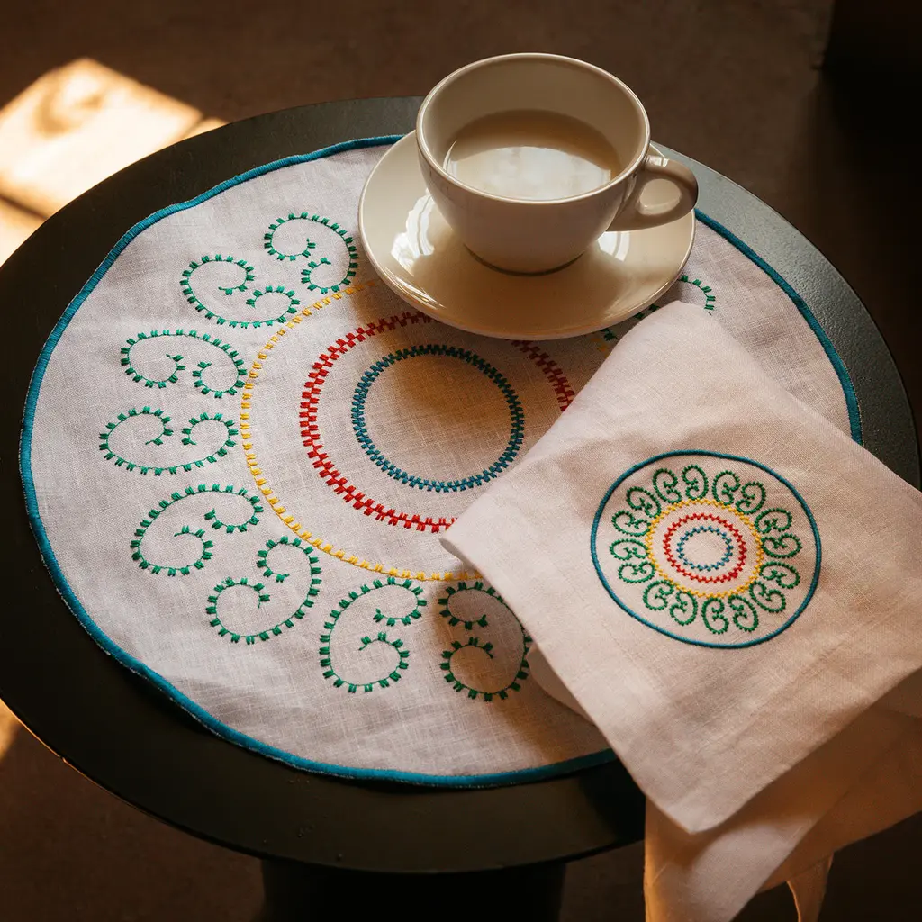 The breath-taking illuminations ("luminarie" in Italian) constellating Apulian village festivals inspired the vibrant, multicolor embroideries adorning the two napkins making up this exclusive set. Hand-sewn from Masters of Linen-certified linen yarns, each napkin is a true work of art capable of delivering the magical Southern atmospheres, its embroideries in prized Mako cotton sealing its unrivaled artisan quality. Check the pricing for the six-piece option with the Concierge.