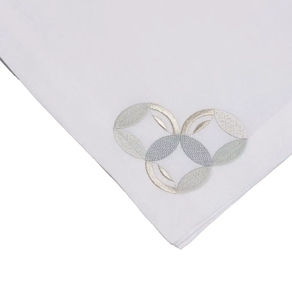 A stupendous handmade embroidery made with three different techniques using four different shades of beige enriches the right low corner of these four napkins, a sophisticated accent to display on an elegant dining table. This gorgeous set is deftly handmade of the most precious white linen.