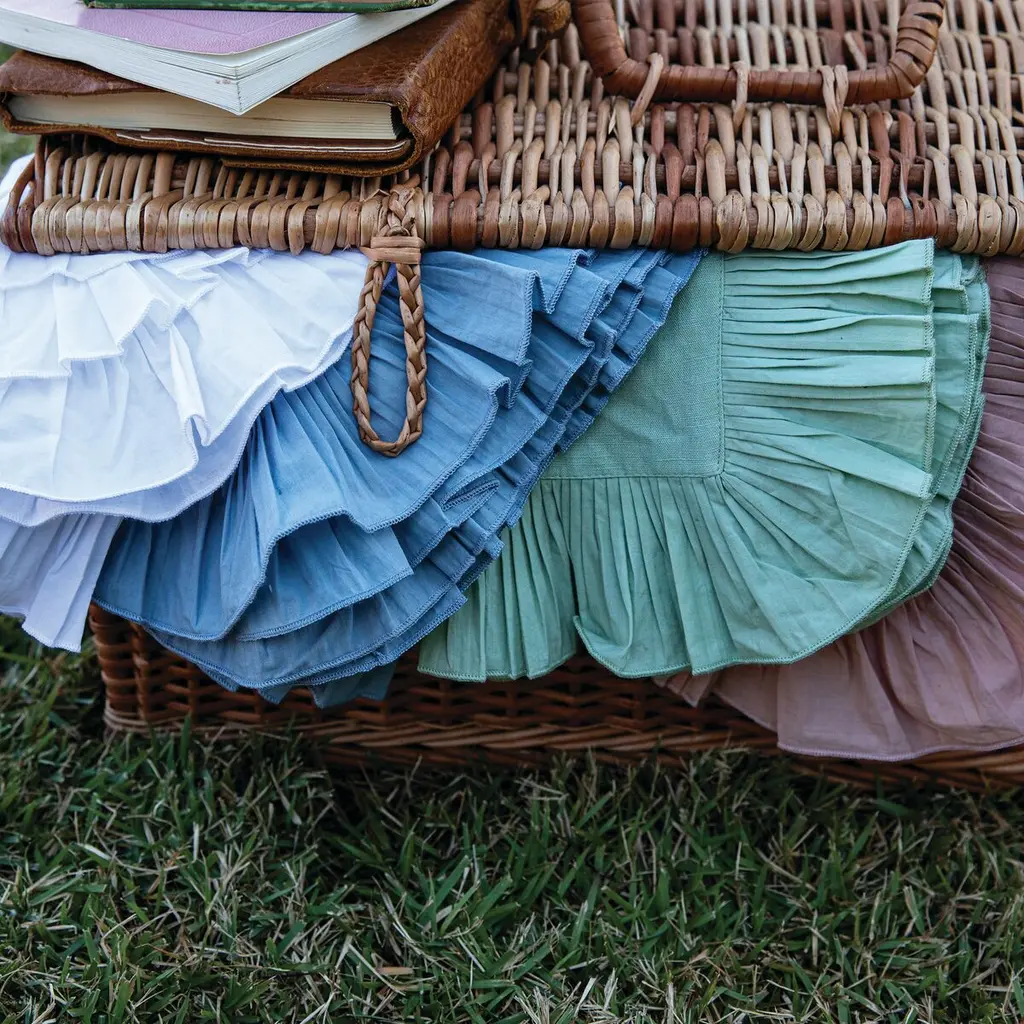 The knife-pleat ruffle border adds timeless charm to this cotton-and-linen napkin. Just as important, the napkin is machine washable.